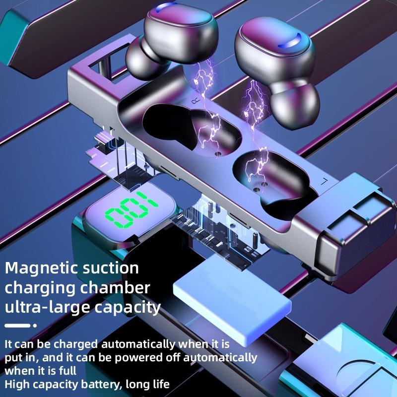 These Bluetooth earphones feature a digital display and a colorful lighting design, offering a stylish and functional audio experience. They are equipped with advanced Bluetooth 5.1+EDR technology, providing stable connectivity and efficient power consumption. The ergonomic space capsule design includes a breathing lamp, making them suitable for various activities and environments.