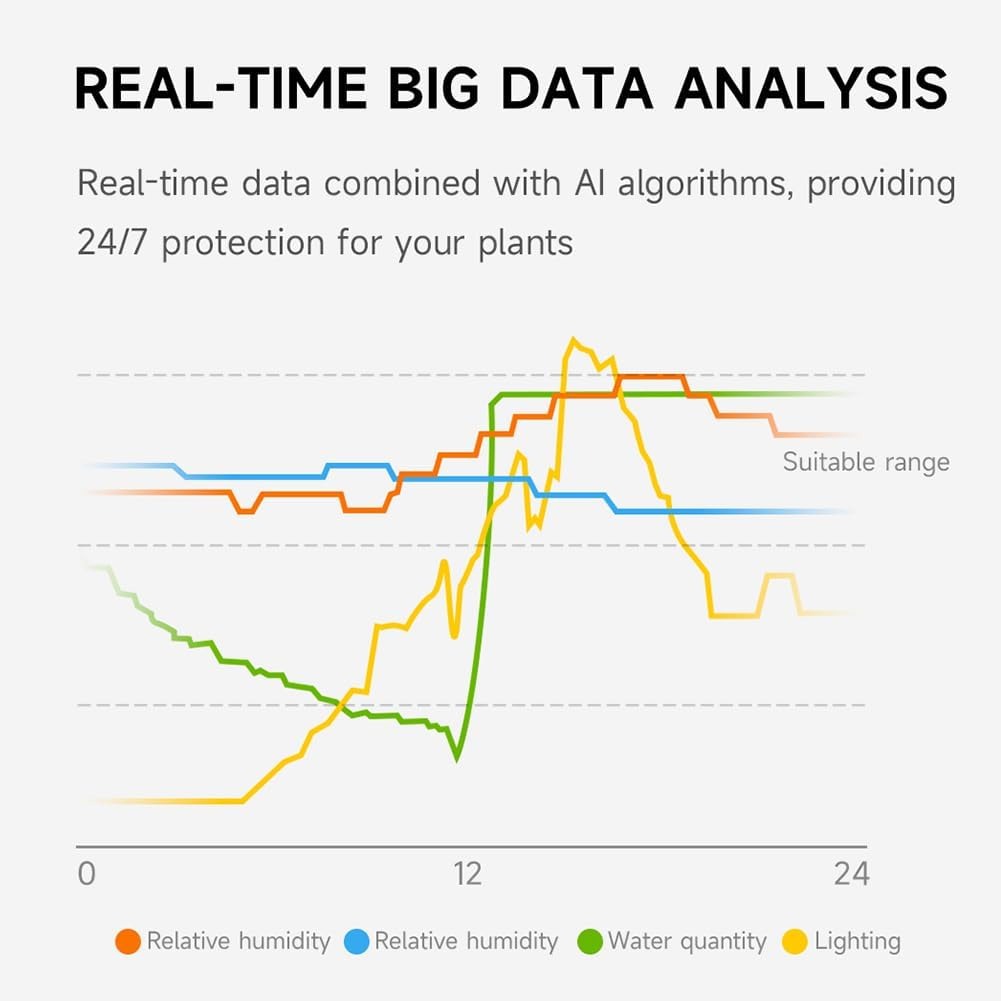 • Includes 7 multi-dimensional sensors designed to monitor plant health and environmental conditions, ensuring optimal care.