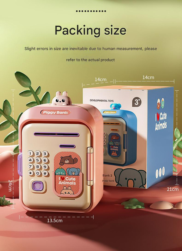 This interactive kids’ piggy bank combines entertainment and education, offering a fun way for children to learn about saving money, storytelling, and early education concepts. It features multiple functions including story narration, music, nursery rhymes, and a secure password lock, making it an engaging and educational toy for young children.