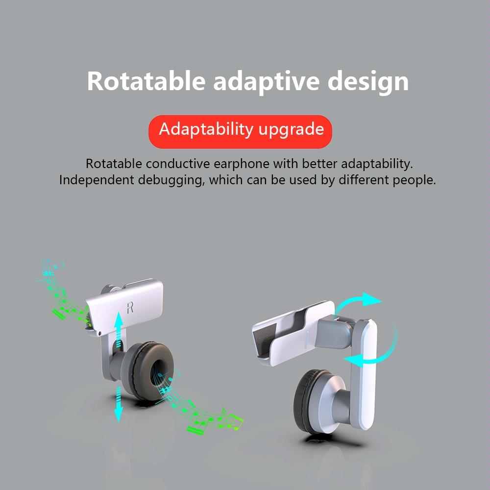- Rotatable conductive headphones with independent adjustment for better adaptability