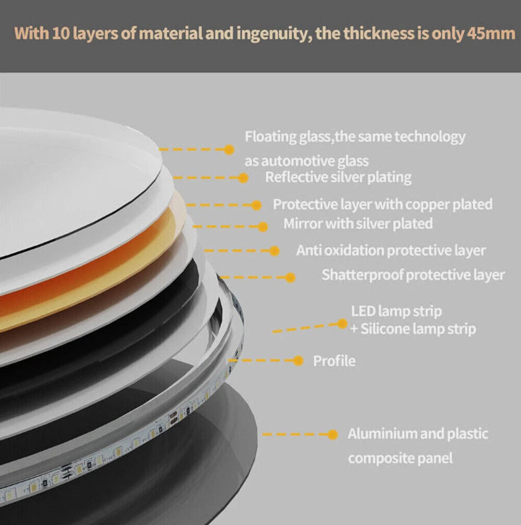 This oval frameless LED bathroom mirror features a sleek and minimalist design, combining modern technology with functional lighting. It offers adjustable brightness and color temperature options, anti-fog functionality, and intelligent memory settings to enhance your daily routine. Easy to install and built with durable materials, this mirror provides a clear and bright reflection suitable for any bathroom space.