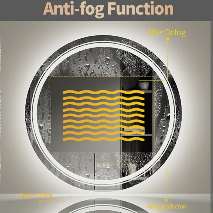This LED round frameless wall mirror combines modern design with advanced lighting features, making it ideal for salons, bathrooms, or makeup rooms. It offers customizable lighting options, soft backlit illumination, and intelligent functions to enhance your space with both style and practicality.