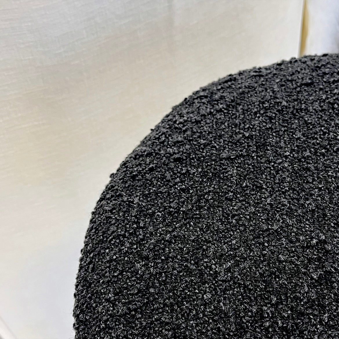 - Black boucl?? upholstery with a textured finish