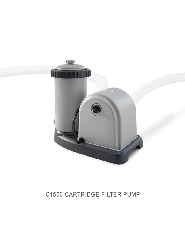 - Includes a cartridge filter pump with a flow rate of 1,500 Gph