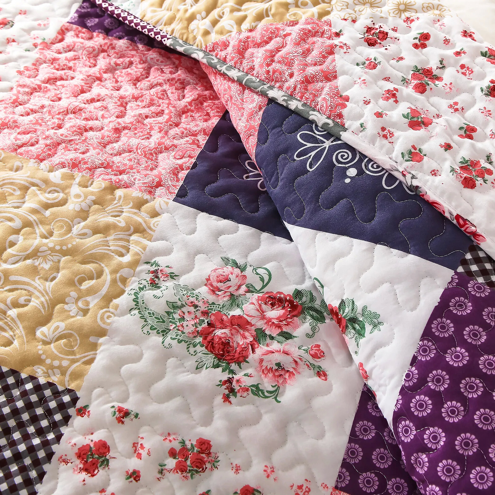The set includes a quilted coverlet and matching pillowcases, suitable for creating a comfortable and stylish sleeping environment.