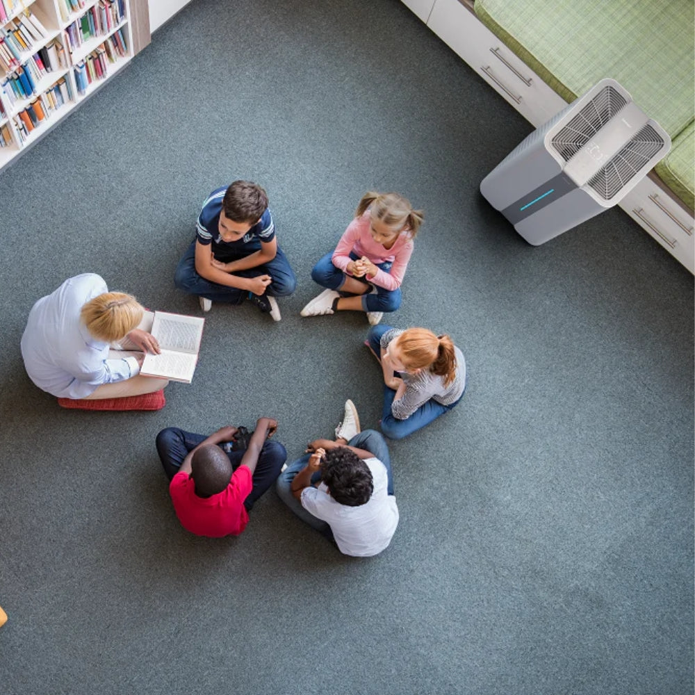 This high-performance air purifier is designed to effectively clean the air in large spaces, covering up to 260 square meters. It features a powerful six-stage filtration system that removes up to 99.97% of microscopic allergens, bacteria, viruses, and odors, ensuring a healthier environment.