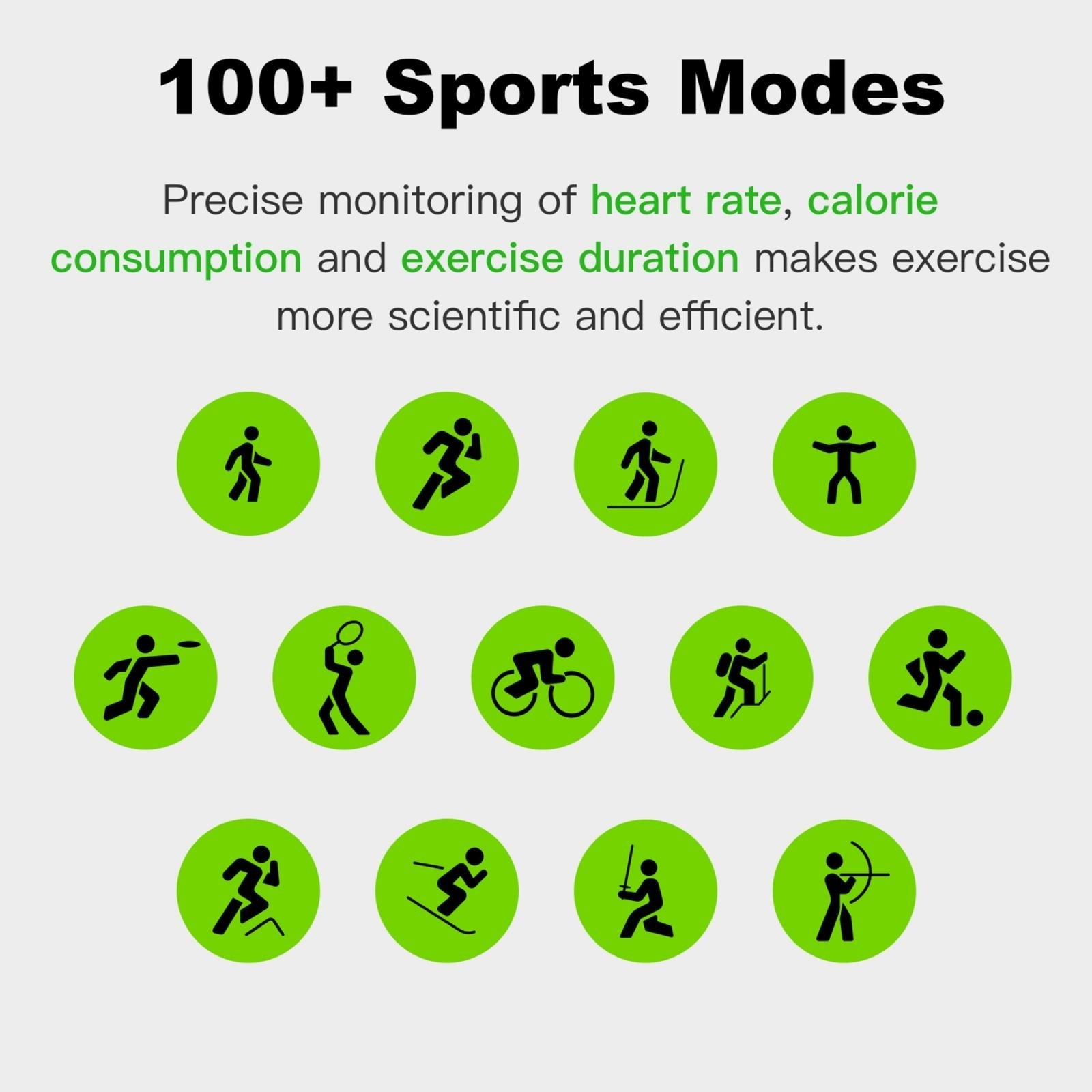 - Health monitoring for heart rate, blood pressure, blood oxygen, body temperature, stress, and sleep