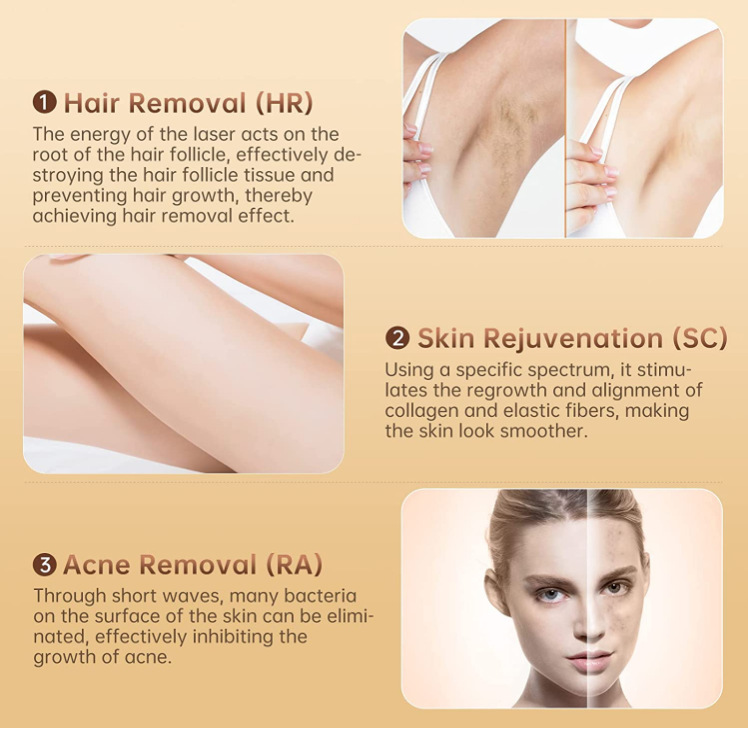 - Functions: Hair Reduction, Skin Rejuvenation, Acne Removal