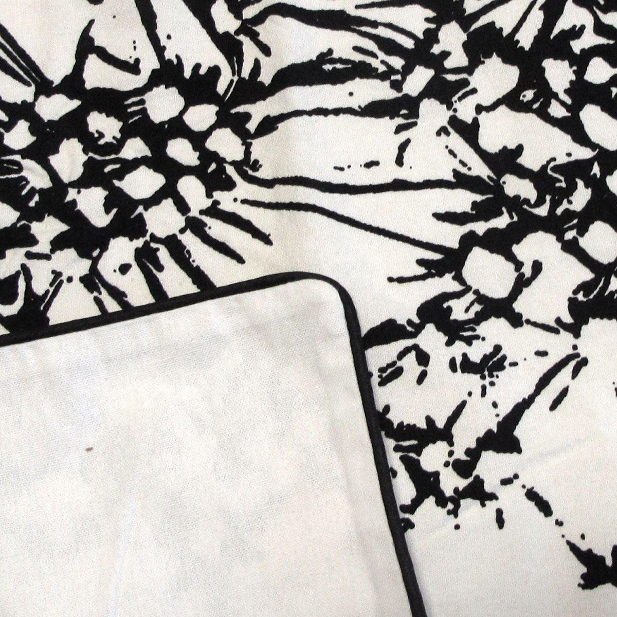 This cushion cover features a bold printed design in black and off-white hues on high-quality cotton fabric. Its modern aesthetic adds a stylish touch to various interior styles, providing both visual appeal and comfort. Made from soft and durable cotton, it is a versatile accessory for enhancing home decor.