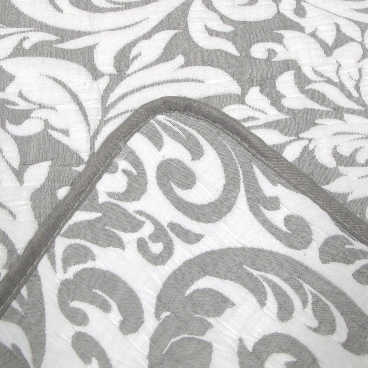Jane Barrington Grey & White Lightly Quilted Jacquard Reversible Coverlet Set Queen