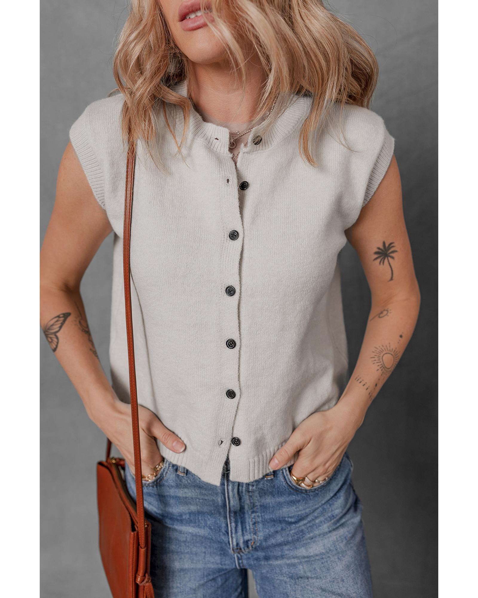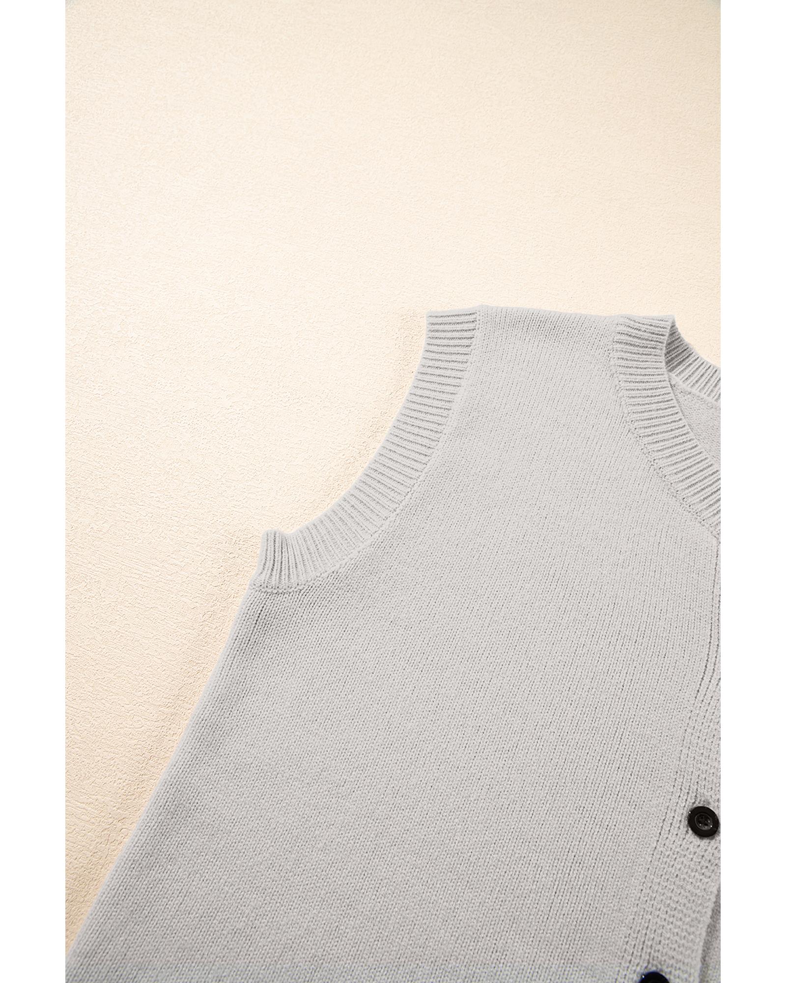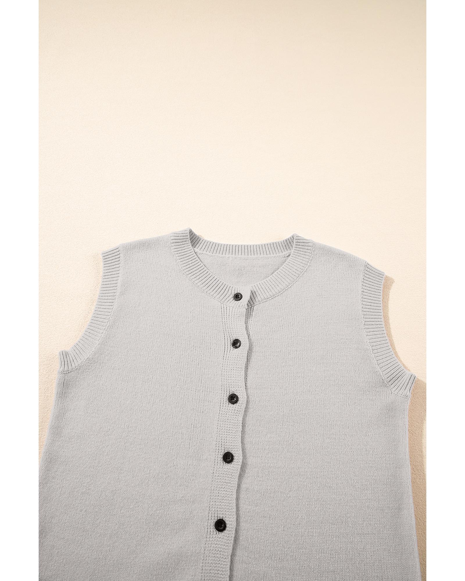 This button-up O neck sweater vest features a trendy fitted design suitable for transitional weather and layering. Its versatile style allows for both casual and more polished looks, making it a great addition to your wardrobe.