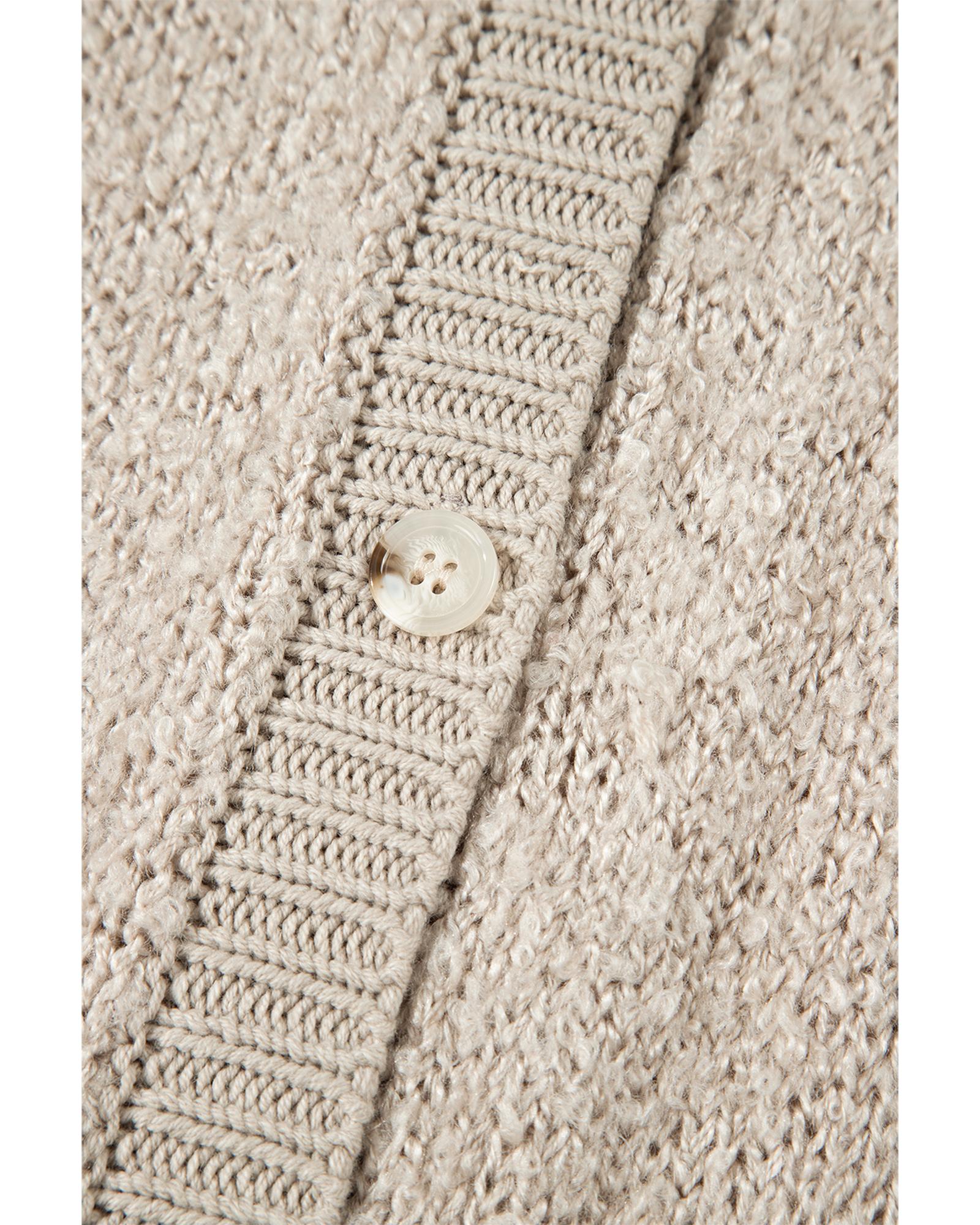 This cardigan features a relaxed fit with trendy drop shoulders and a sophisticated collared neckline, offering a perfect blend of chic and casual style. It is designed with convenience in mind, including a front button closure and handy side pockets for added functionality.