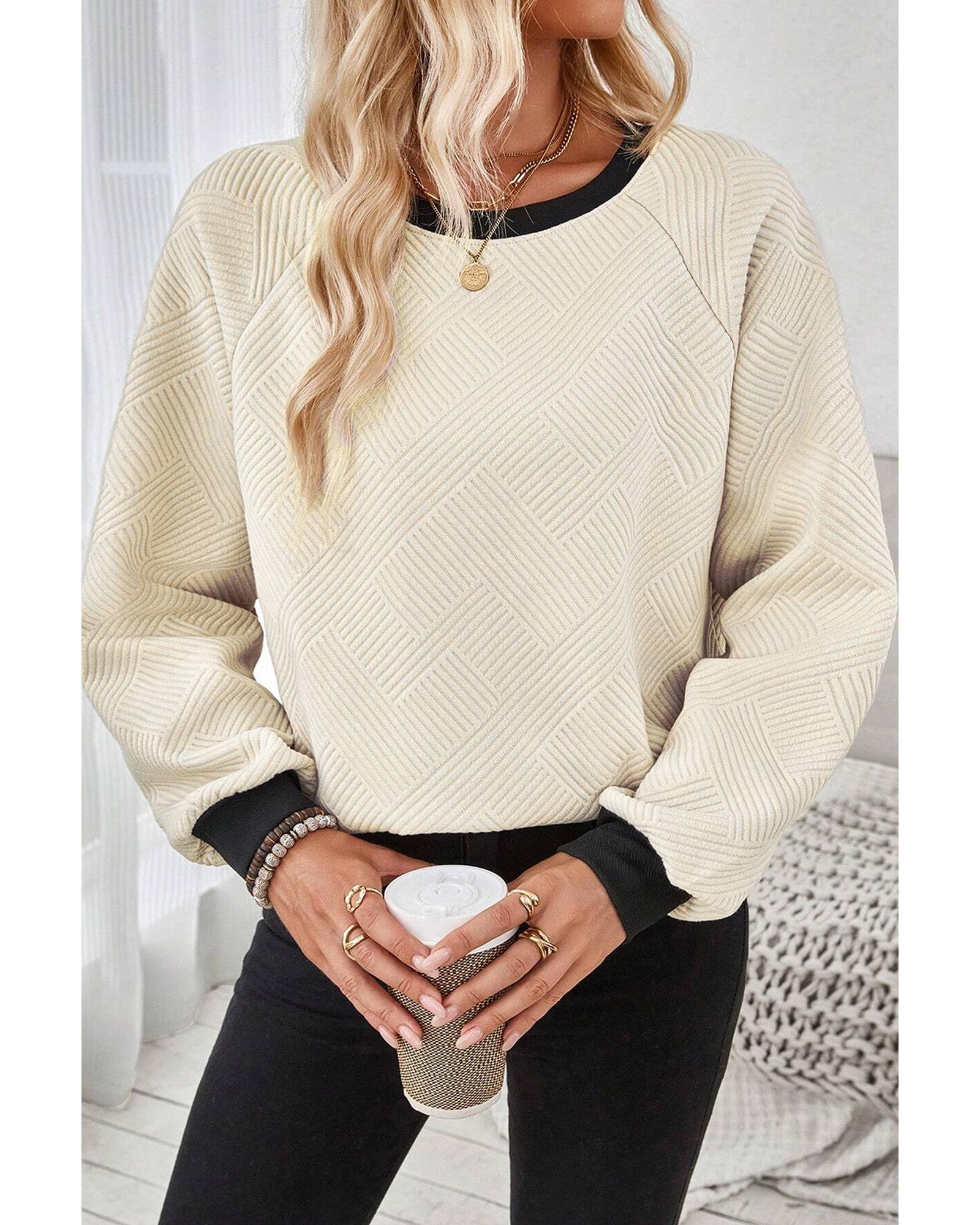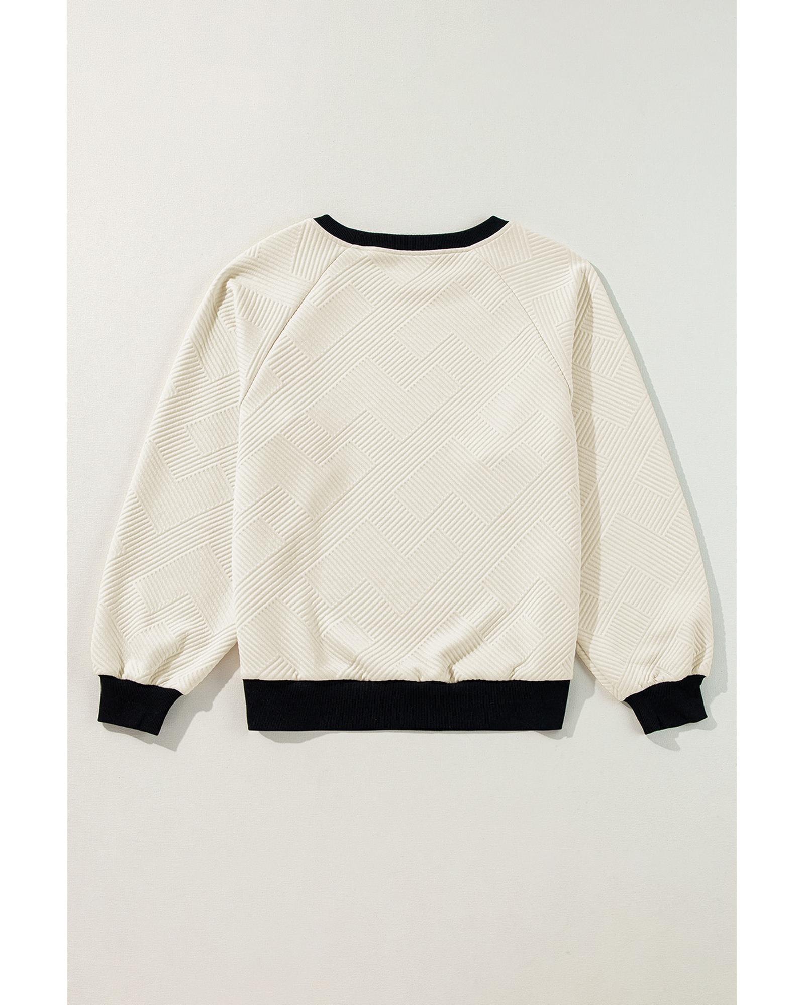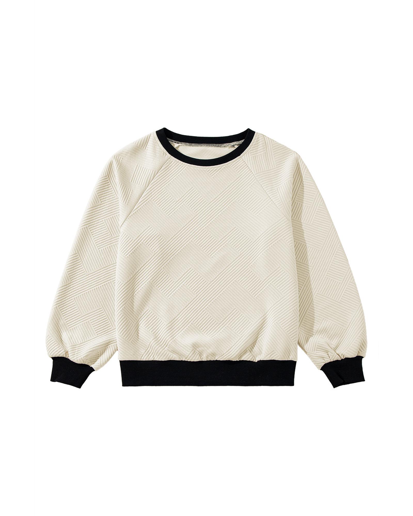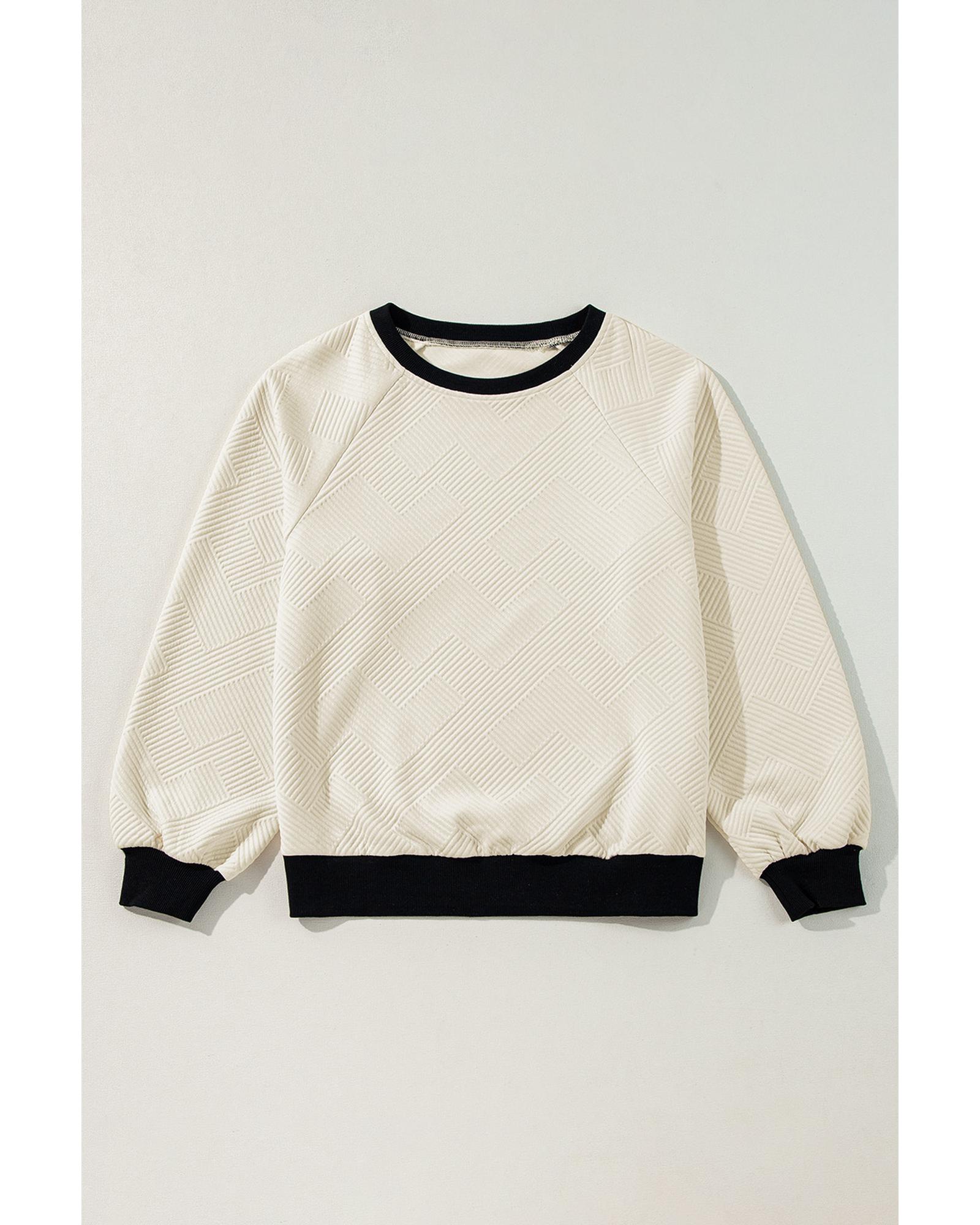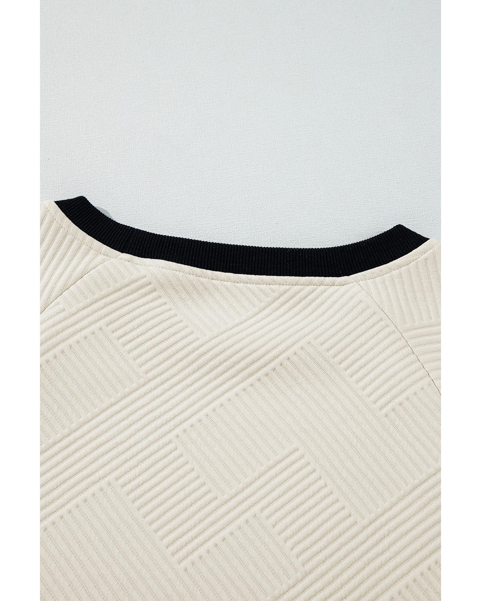 - 1 x Color Block Edge Raglan Sleeve Crew Neck Textured Top