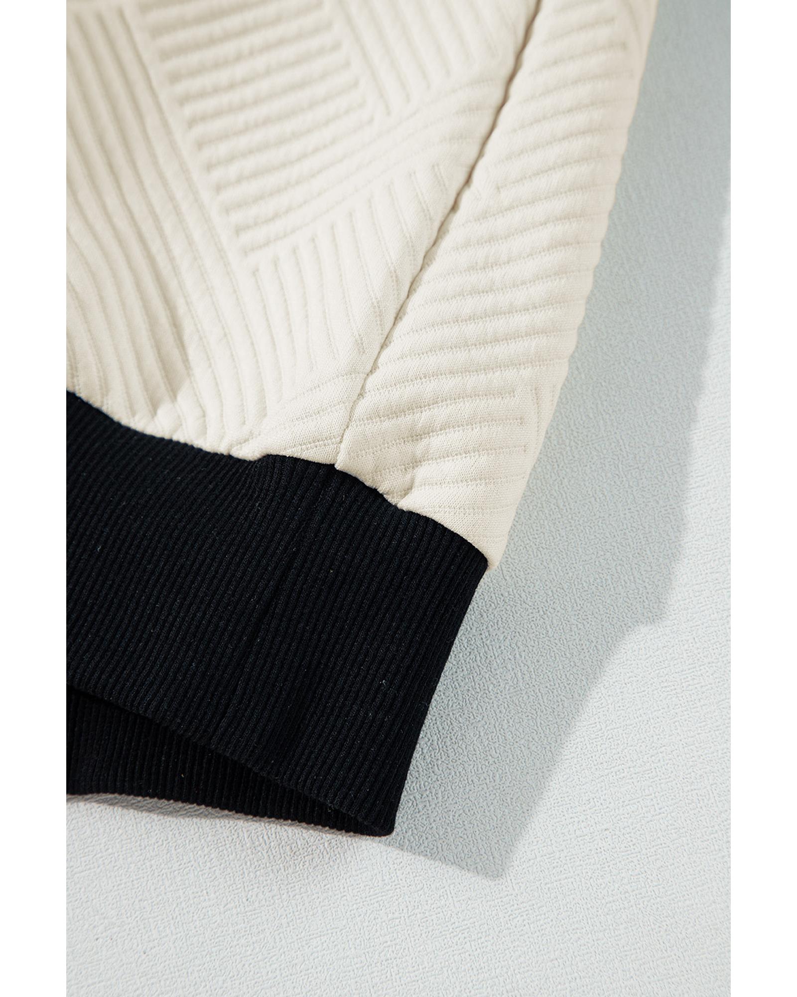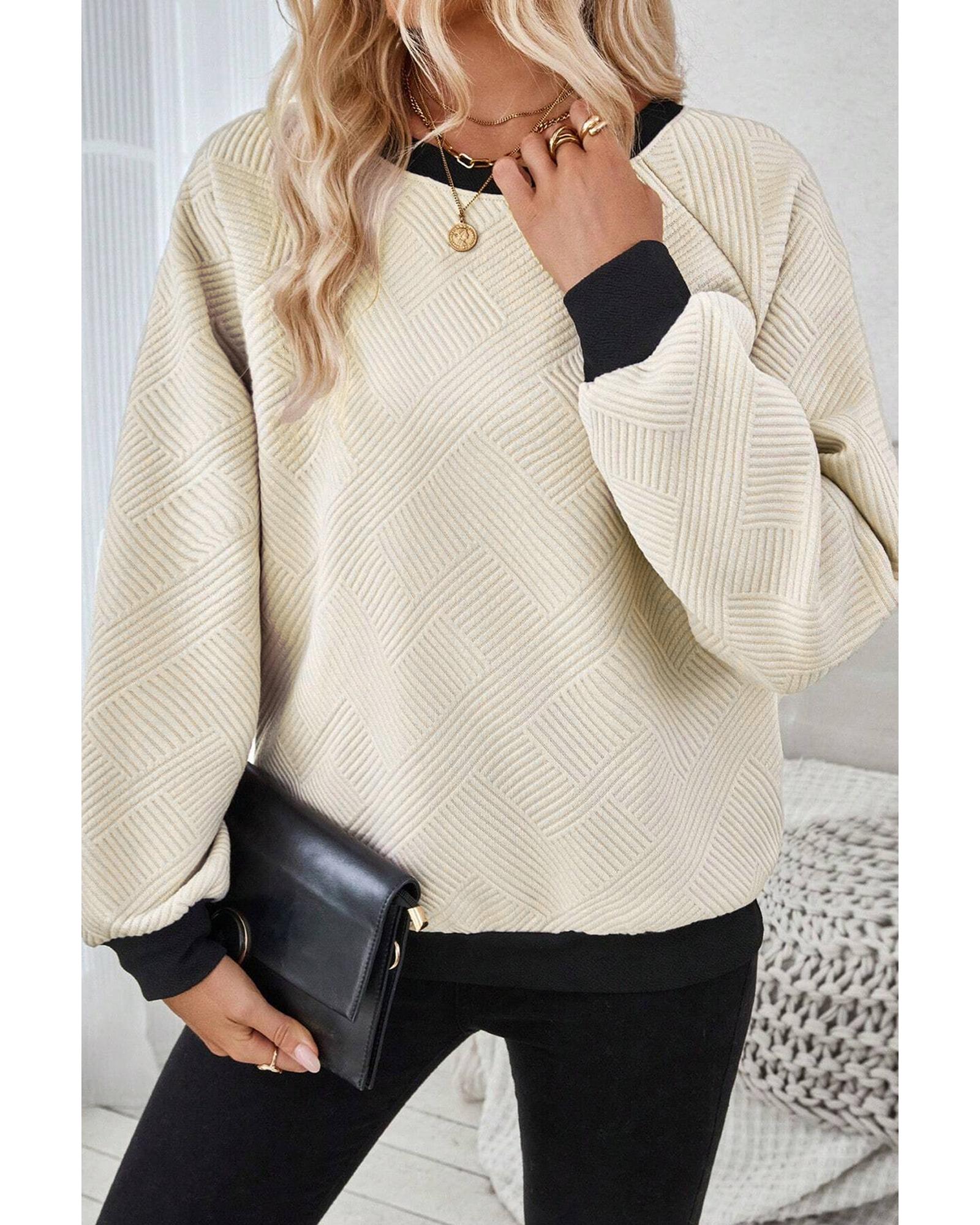 This stylish top features a modern design with color block edges and raglan sleeves, making it a perfect addition to your wardrobe. The unique textured fabric adds a touch of sophistication while ensuring comfort.