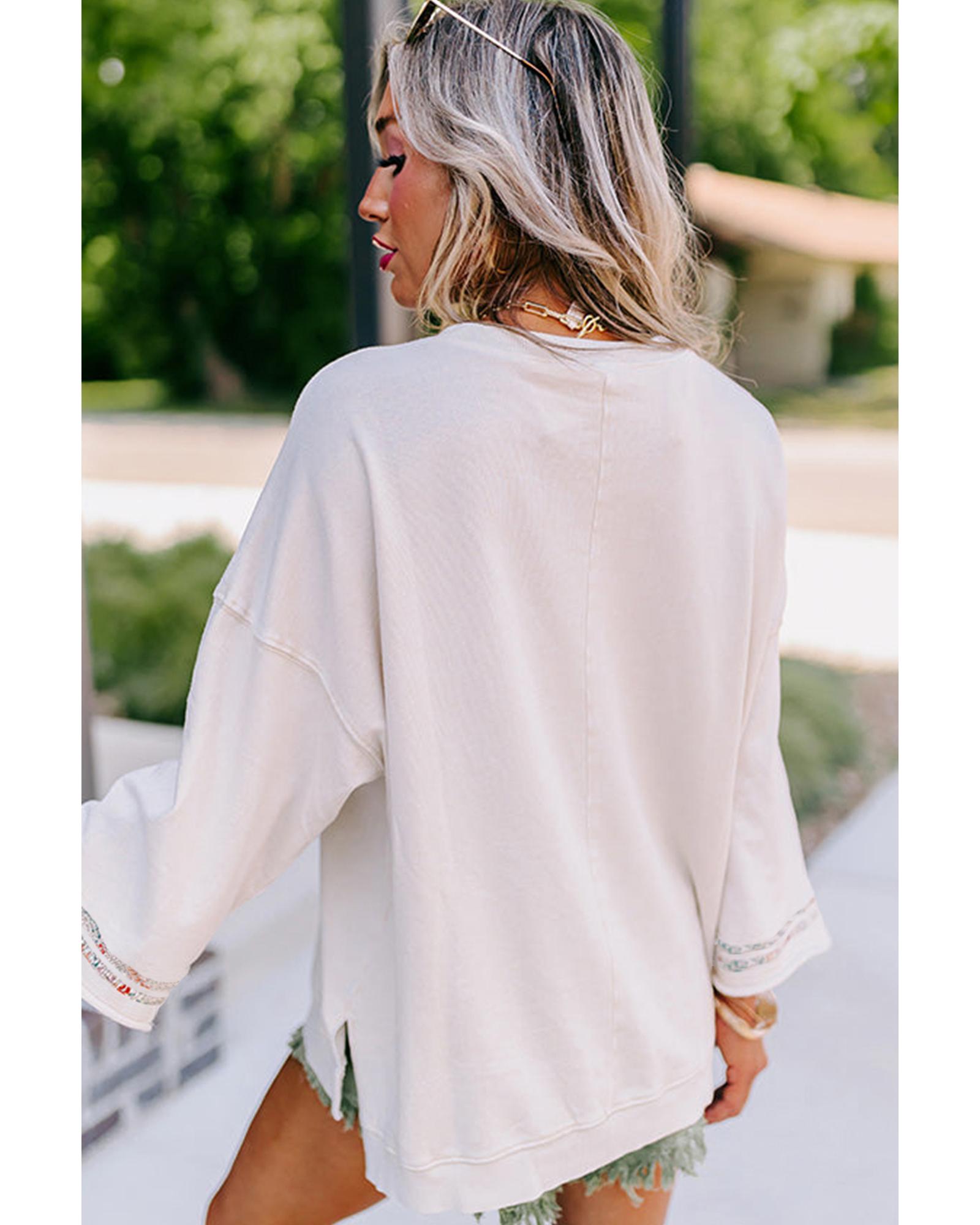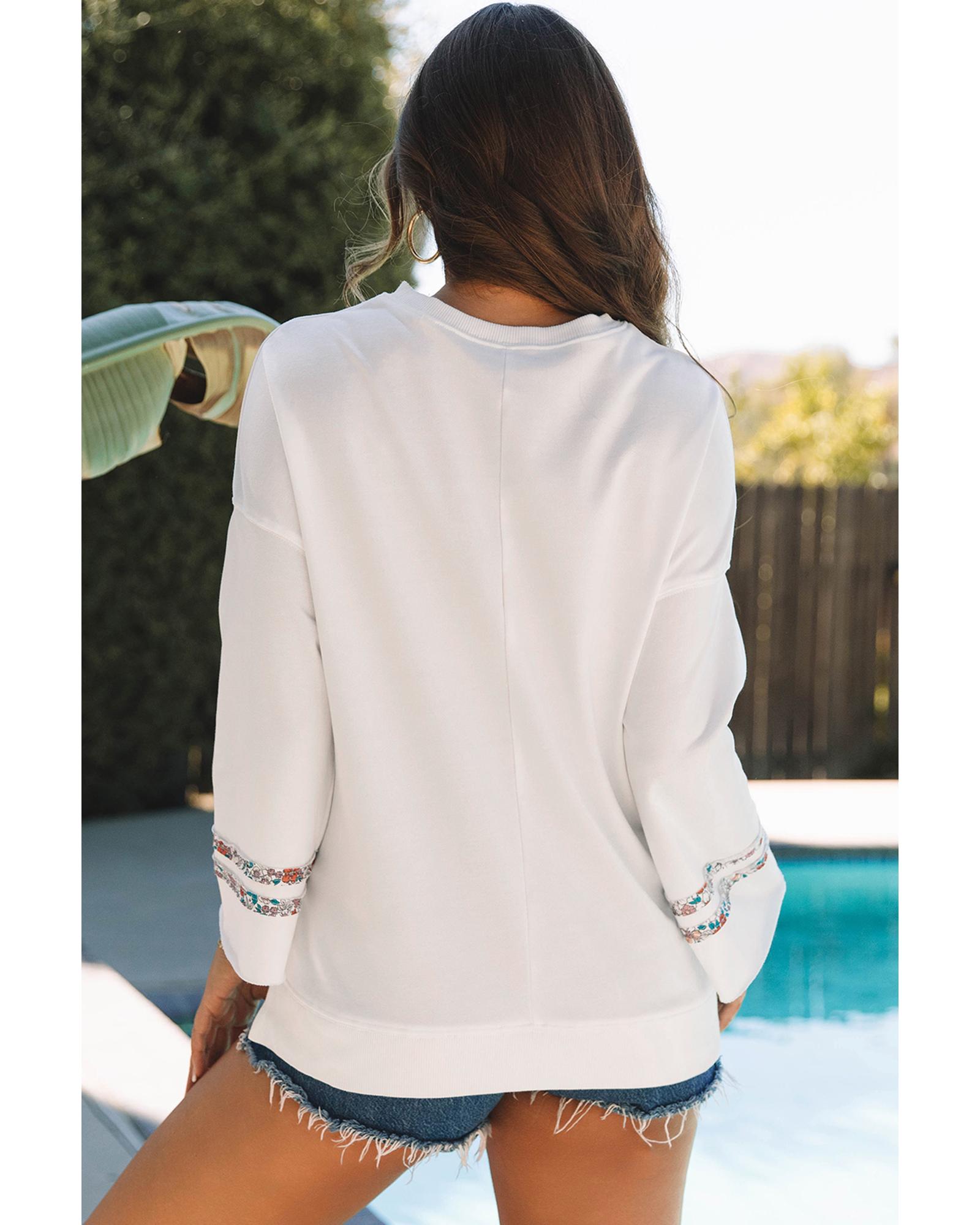 Jet Stream Floral Peace Sign Graphic Drop Shoulder Wide Sleeve Casual Top – L