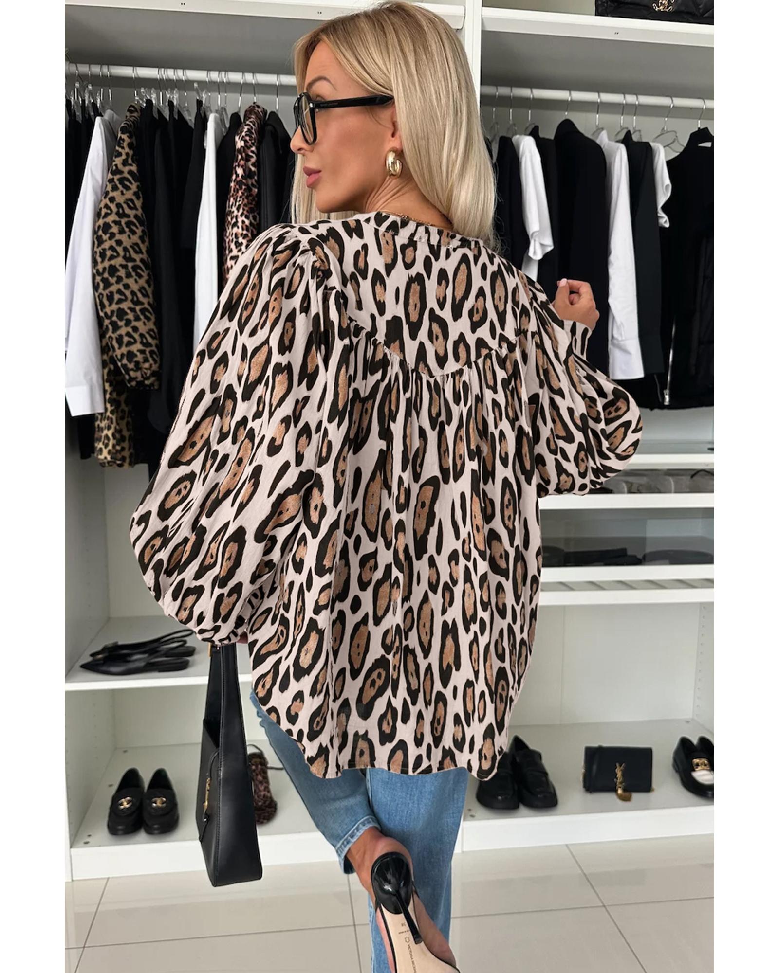 Jet Stream Oversized Leopard Print Balloon Sleeve Casual Shirt – L