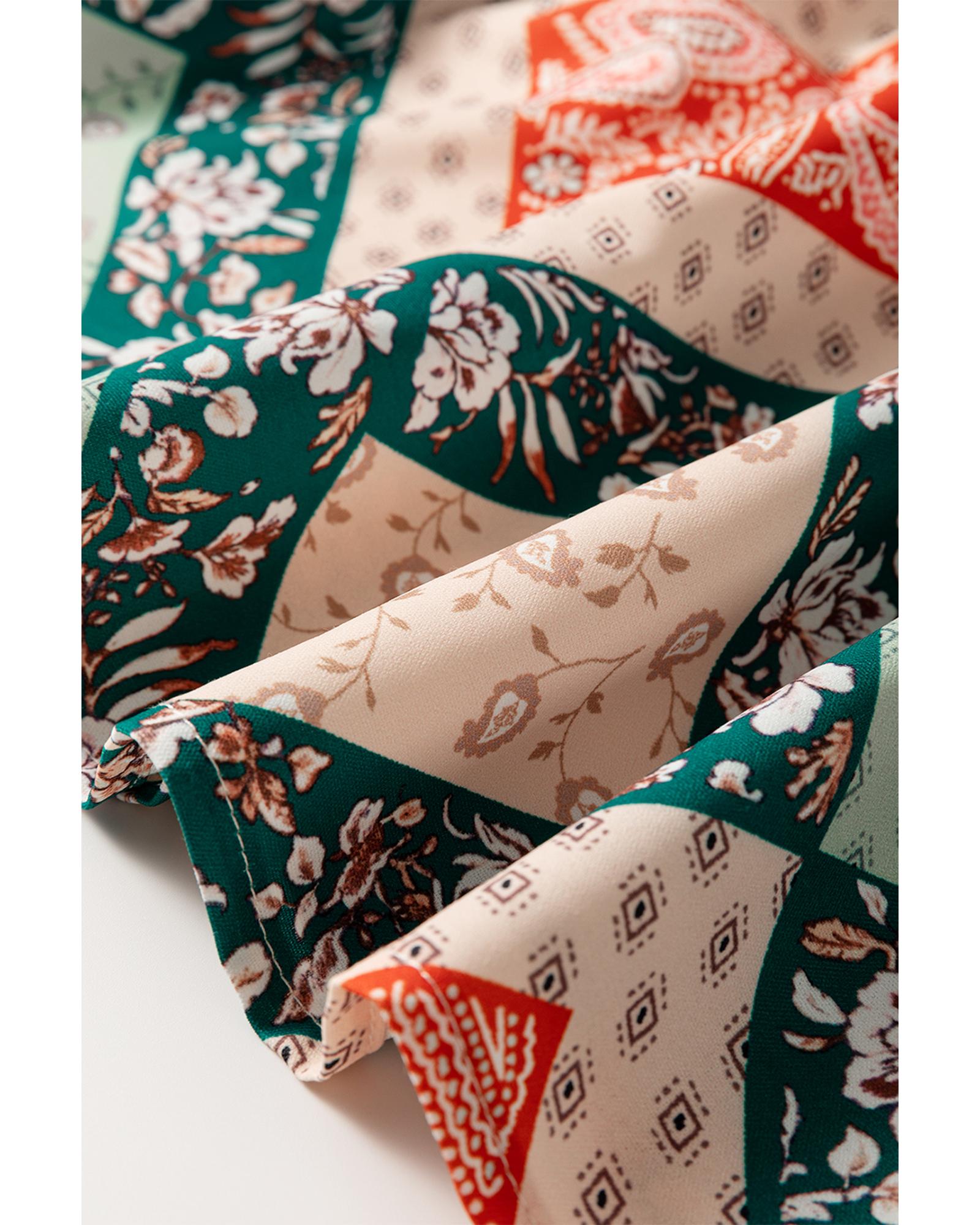 This stylish top features a unique paisley geometric patchwork design, perfect for adding a trendy touch to your wardrobe. With a loose fit and bubble sleeves, it offers both comfort and style, making it an ideal choice for casual outings.