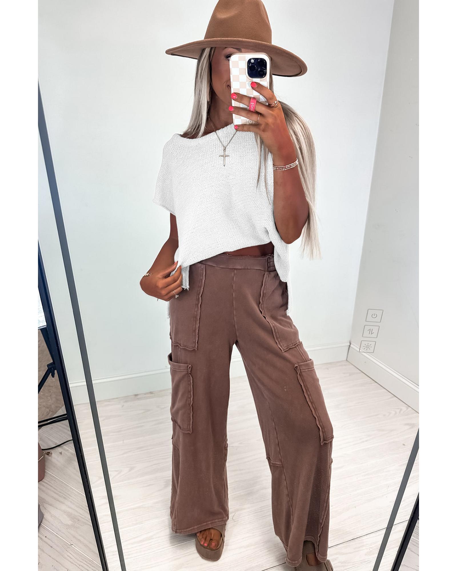 This solid color sweater tee features a trendy fitted design with side slits, offering a stylish and versatile look. Made from soft, luxurious fabric, it provides a comfortable and relaxed fit suitable for various casual occasions.