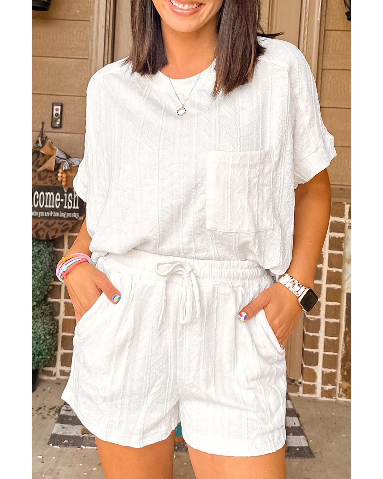 Jet Stream Textured Patched Pocket Short Sleeve Top Drawstring Shorts Set – S