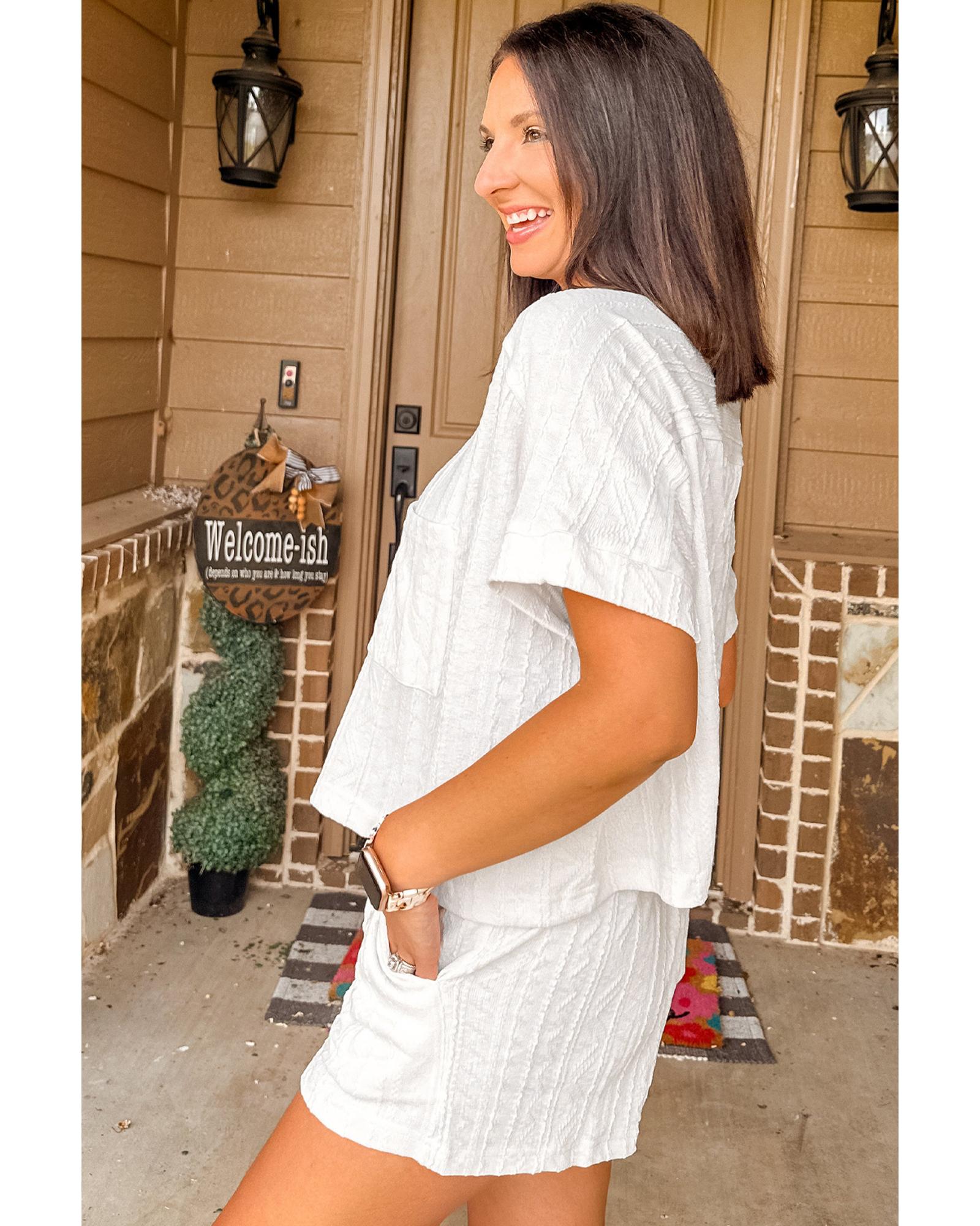 Jet Stream Textured Patched Pocket Short Sleeve Top Drawstring Shorts Set – XL