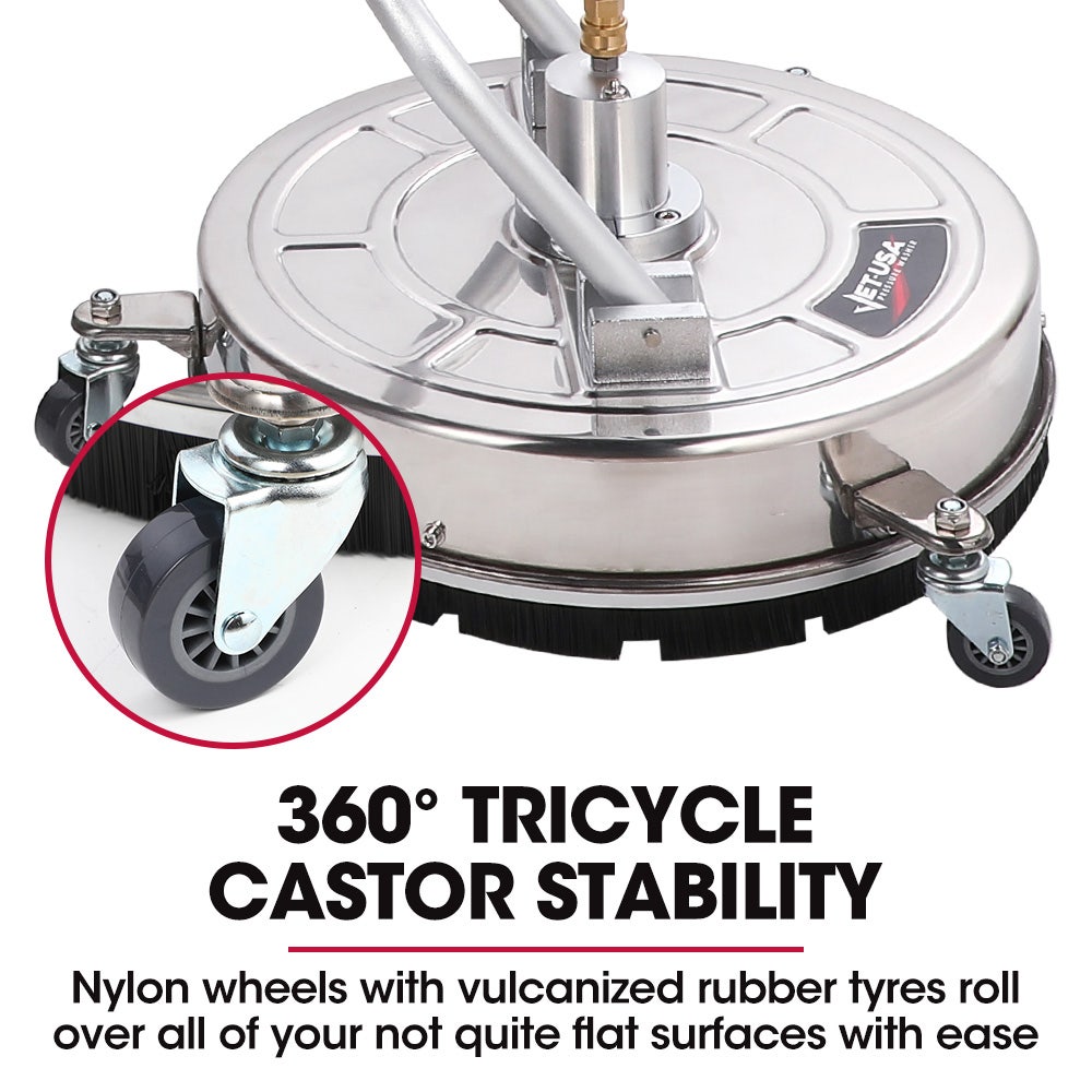 Jet-USA 21″ Stainless Steel Pressure Washer Surface Cleaner with Yoke Handlebar, 3/8″ Fitting, For Concrete Driveway Patio Floor