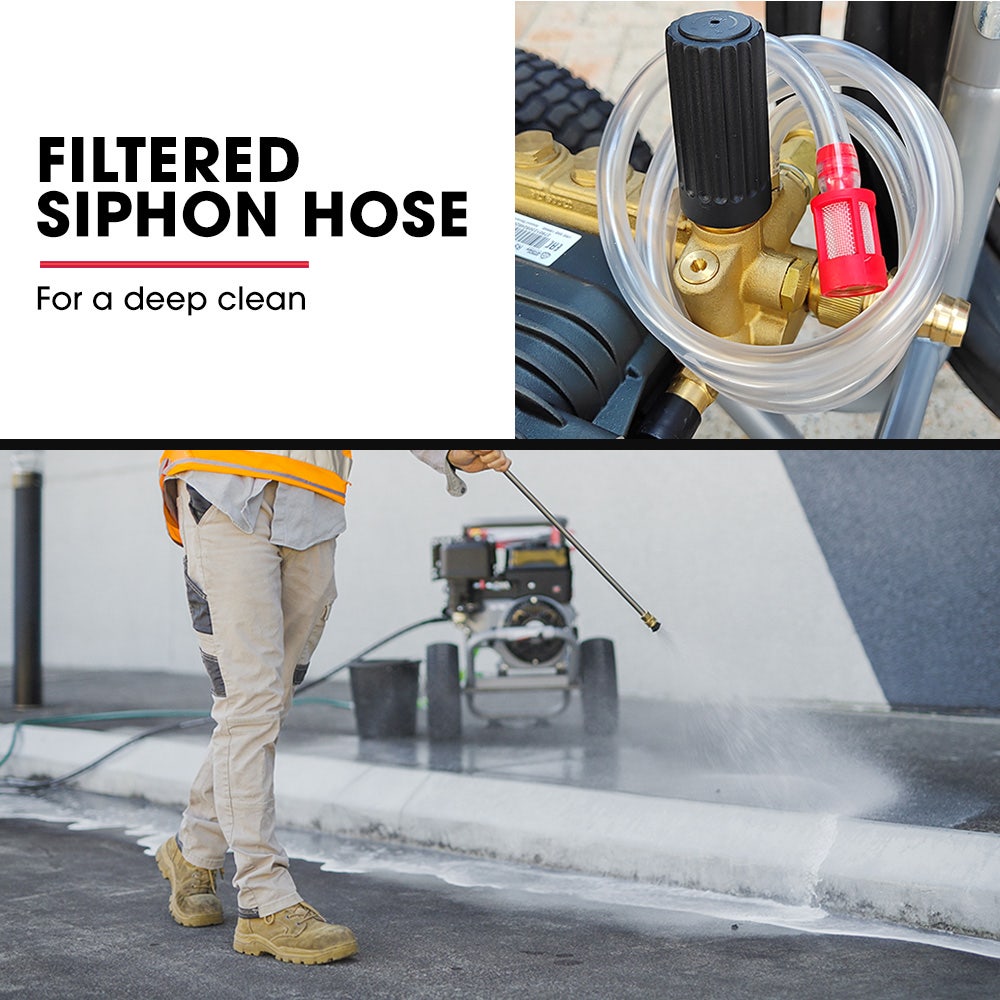 This high-pressure washer offers powerful cleaning performance with a reliable petrol engine and a high-quality Italian-made pump. Designed for demanding applications, it features a robust construction and extensive reach to handle large-scale cleaning tasks efficiently.