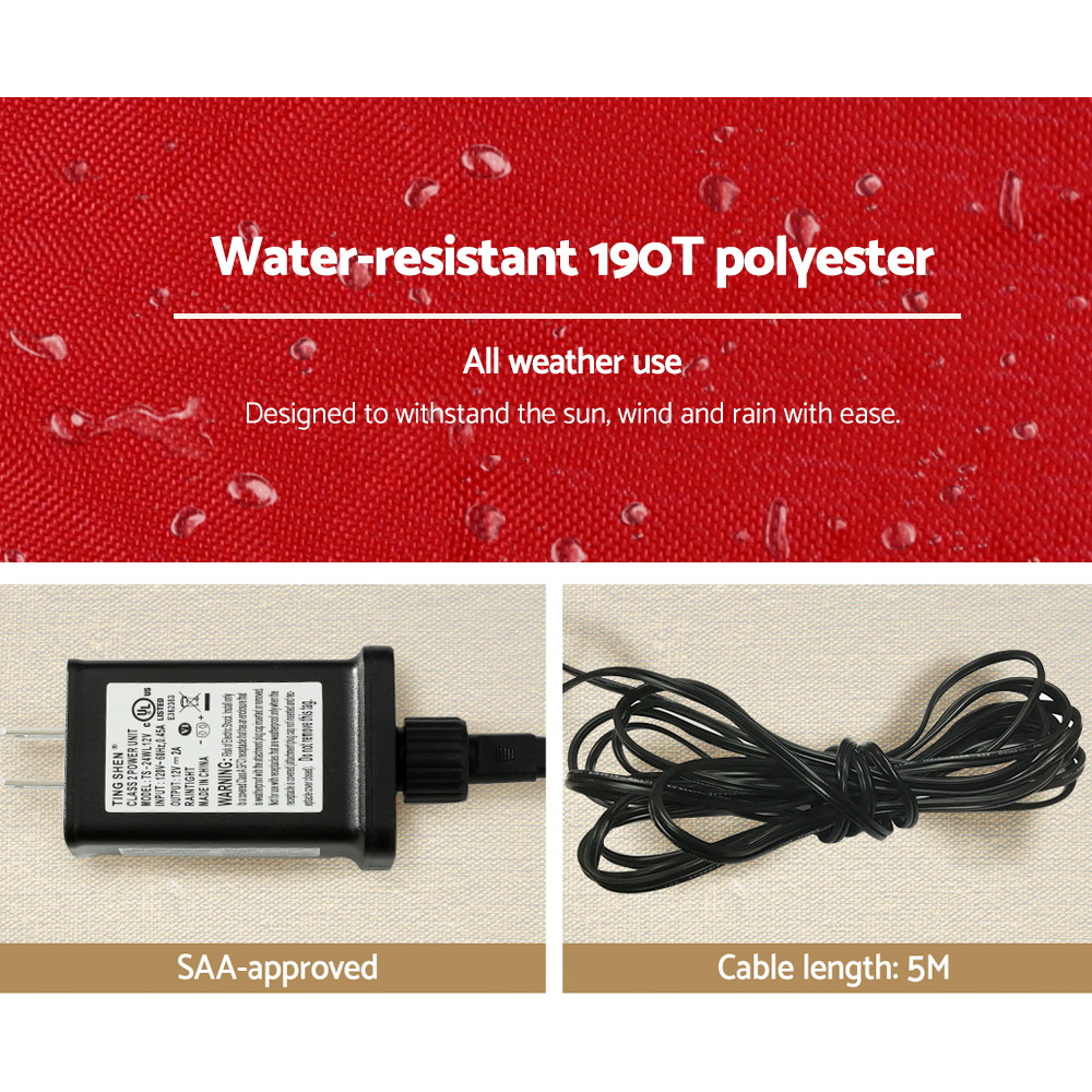 This inflatable decoration adds festive charm to your home, suitable for both indoor and outdoor use. Made from water-repellent and UV-resistant materials, it features built-in LEDs for a stunning night-time display. The inflatable is equipped with a built-in air blower for effortless setup and can be quickly deflated for easy storage. Ground anchoring is secured with included pegs and ropes, ensuring stability during use.