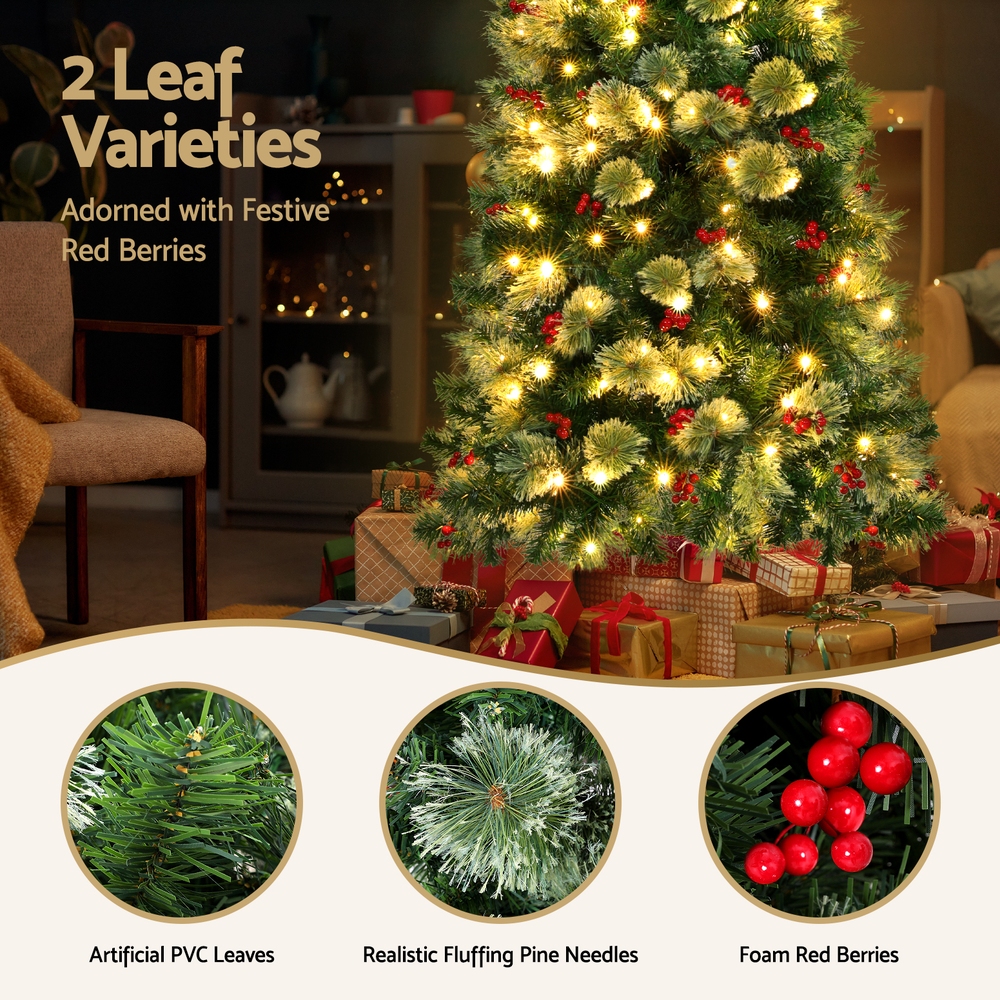 Jingle Jollys Christmas Tree 1.8M LED Xmas Tree Party Decorations Red Barries