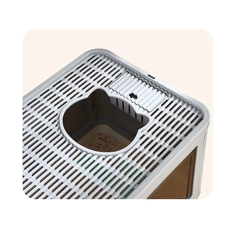 This large hooded cat litter box tray is designed to provide a comfortable and convenient space for your feline friend. It features front and top entry points for easy access, making it suitable for cats up to 10kg. The design emphasizes cleanliness and ease of maintenance, with features that help keep the surrounding area tidy and your cat comfortable.