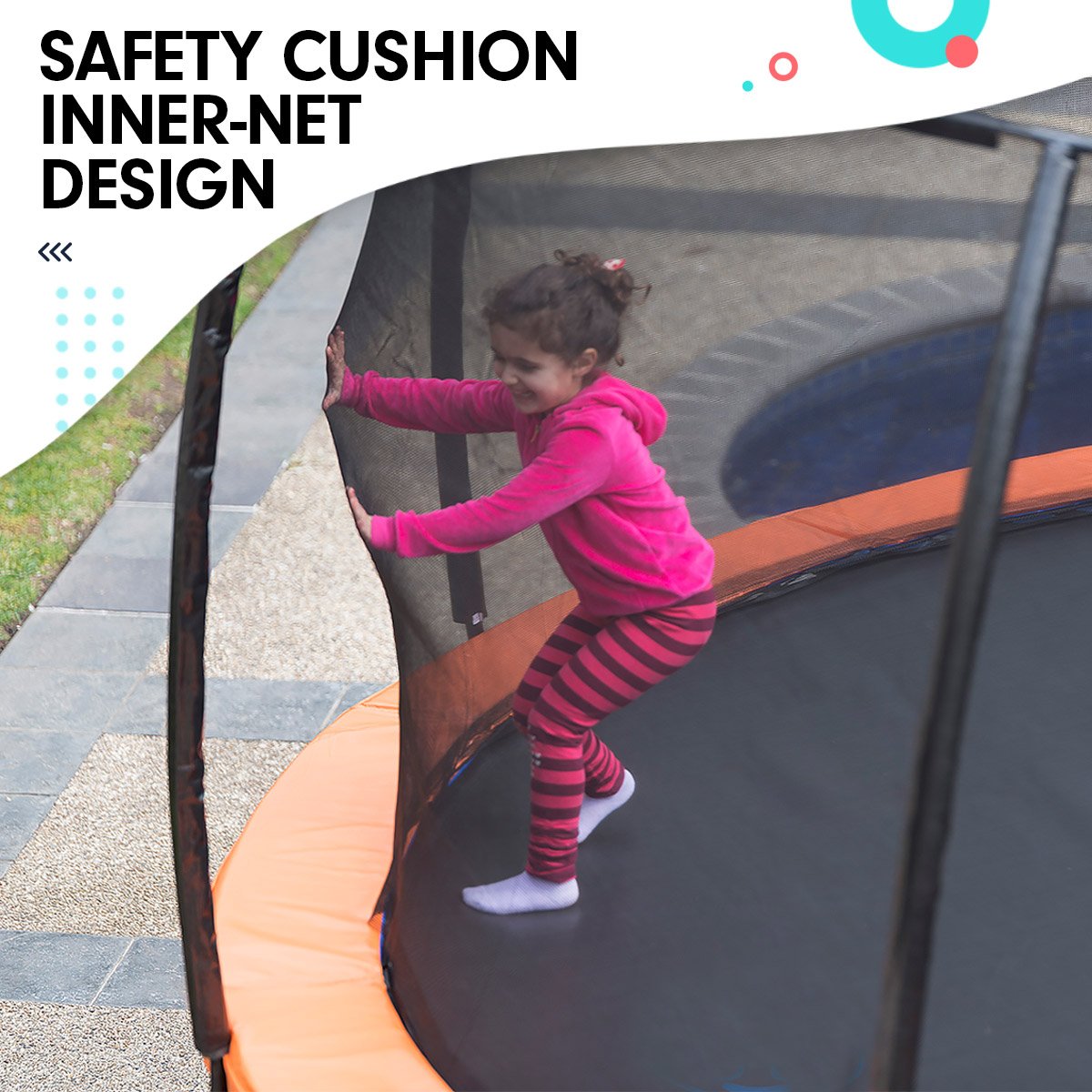 - Design: Oval shape, tailored for 8ft x 14ft trampolines