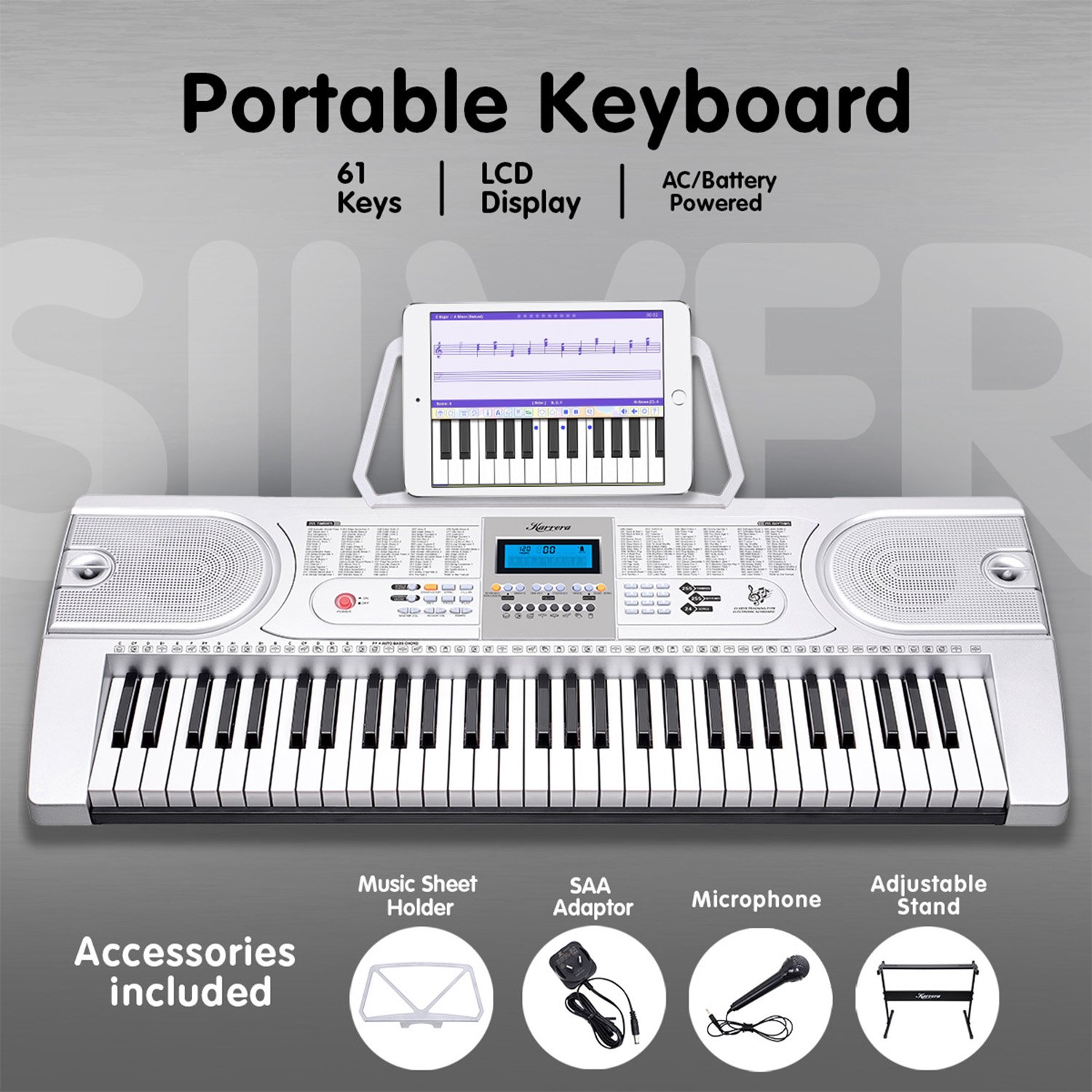 Karrera 61 Keys Electronic Keyboard Teaching Piano with Electric Stand in Silver CHJ-61