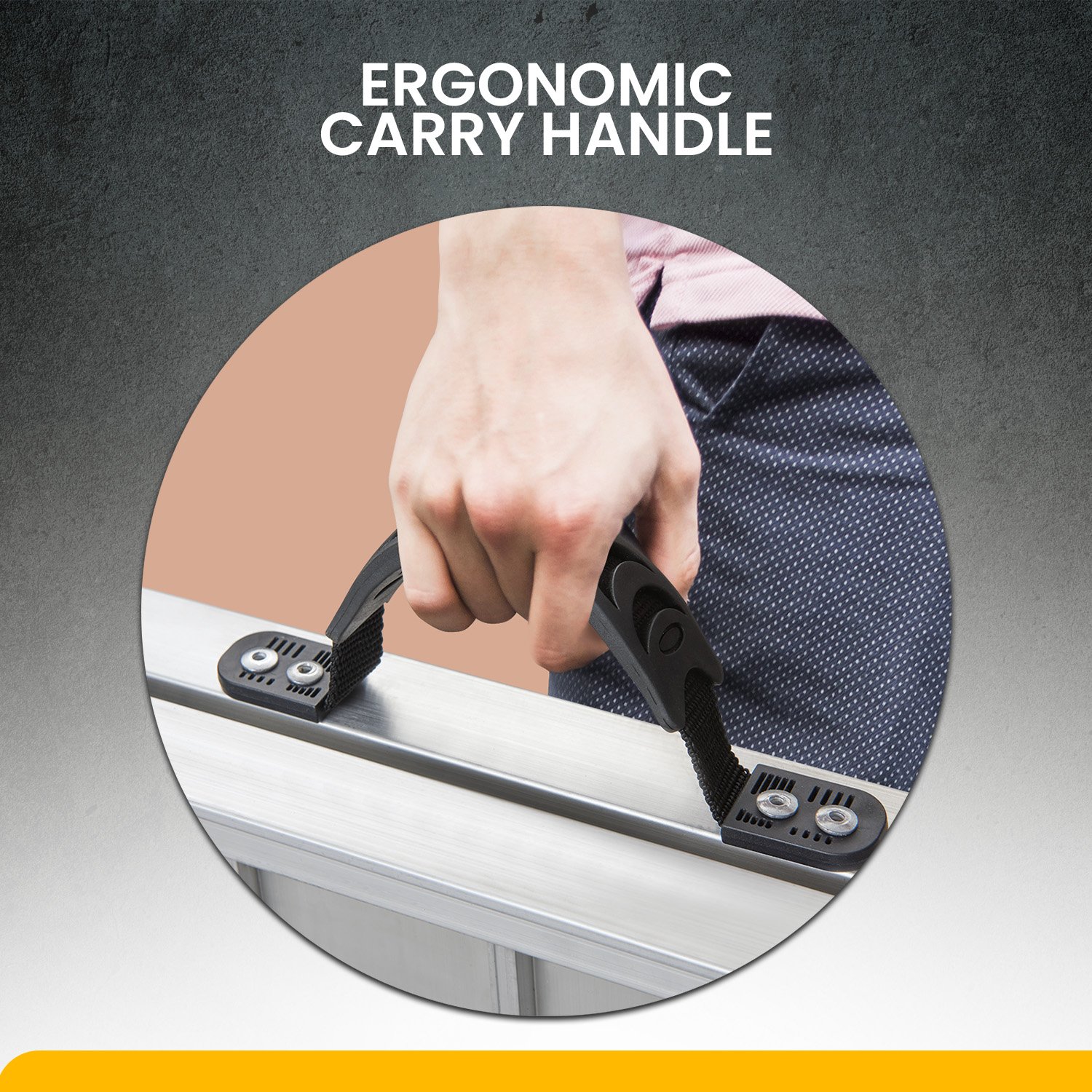 This foldable aluminium wheelchair ramp provides a practical solution for overcoming steps, kerbs, or accessing vehicles. Its portable design features a carry handle, locking pin, and a smart folding mechanism for easy transport and storage. Constructed from high-strength aluminium, it offers durability and reliable support for users up to 275kg. The ramp is equipped with a non-slip surface and safety guardrails to ensure secure and confident usage.