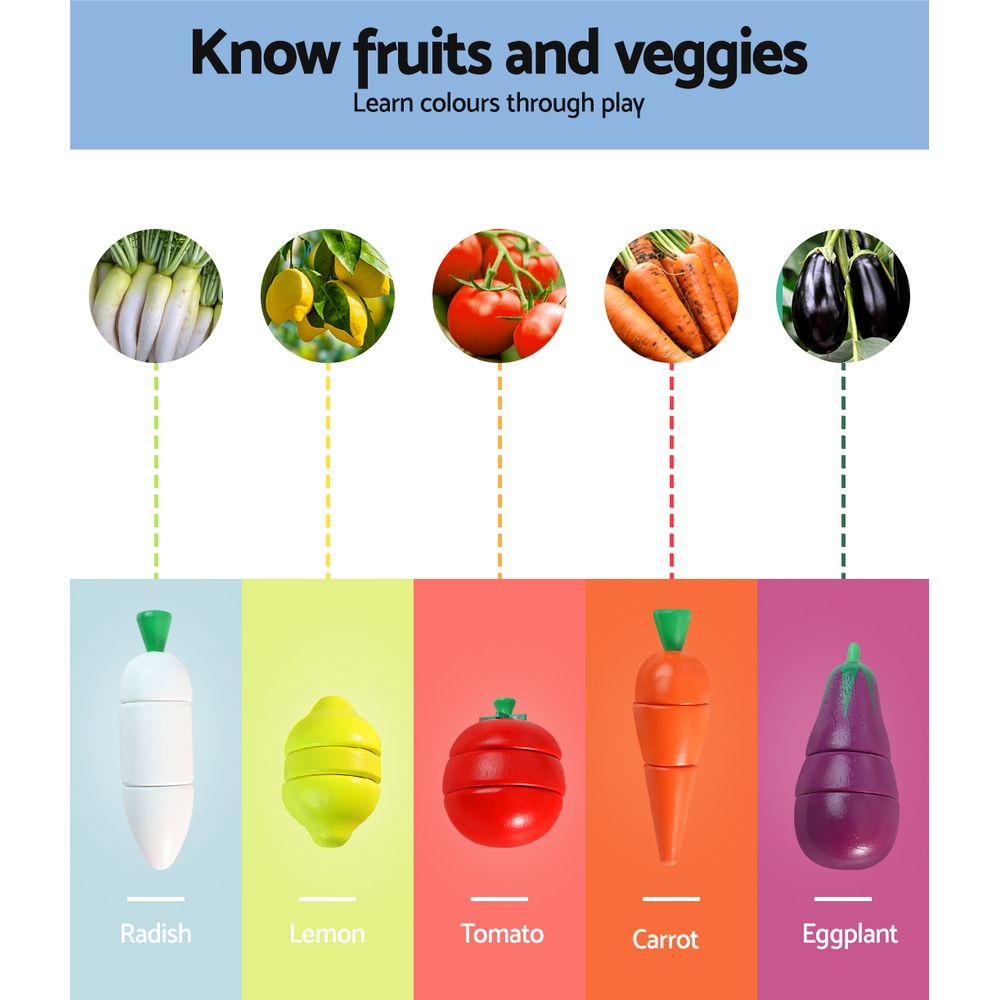 - 29-piece set including fruits, vegetables, and kitchen utensils