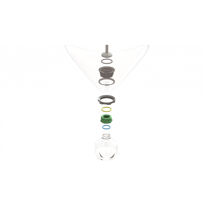 Package includes the 30L fermenter, pressure relief valves, collection bottle, thermowell, and stand for stable placement.