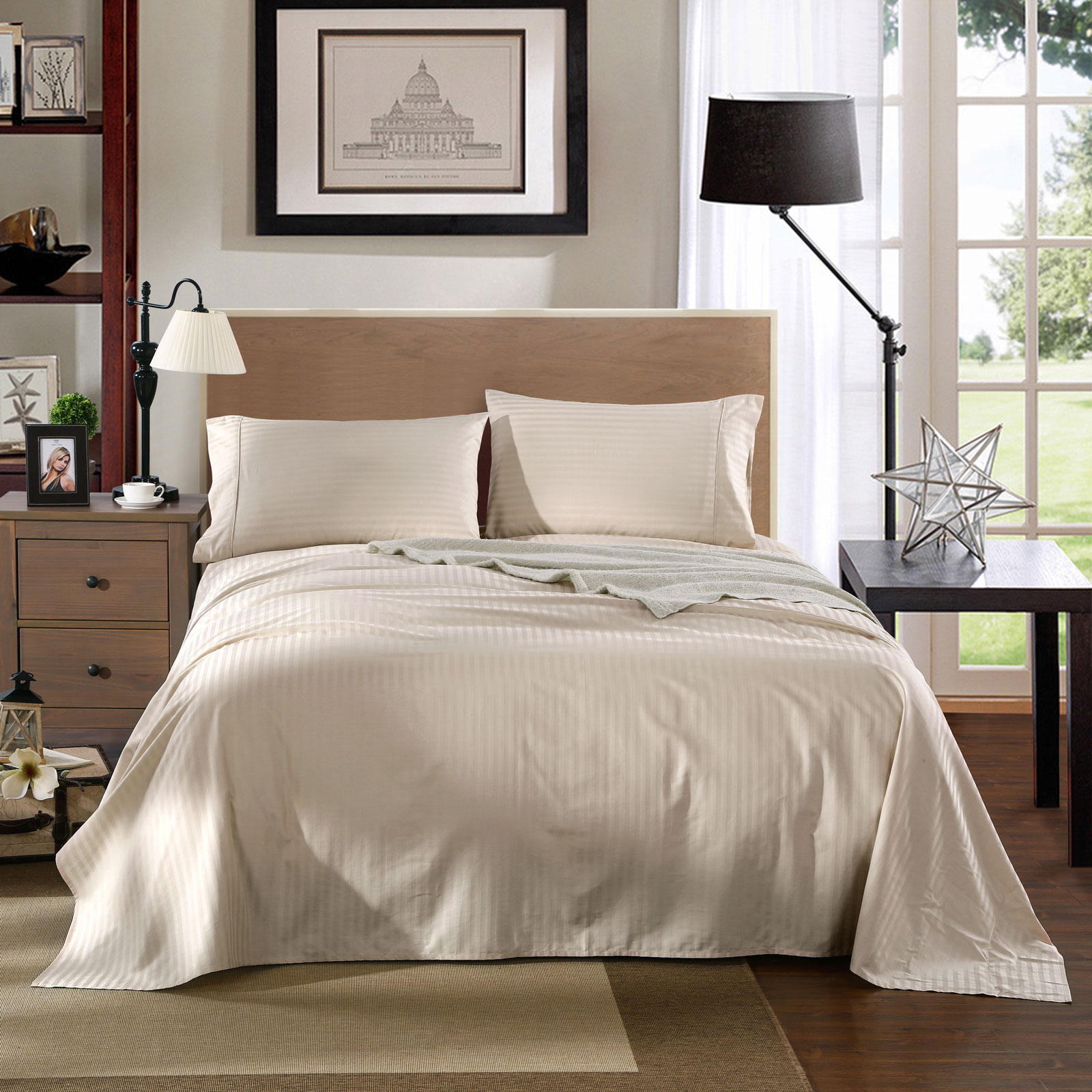 Kensington 1200 Thread Count 100% Egyptian Cotton Sheet Set Stripe Hotel Grade – King – Sand