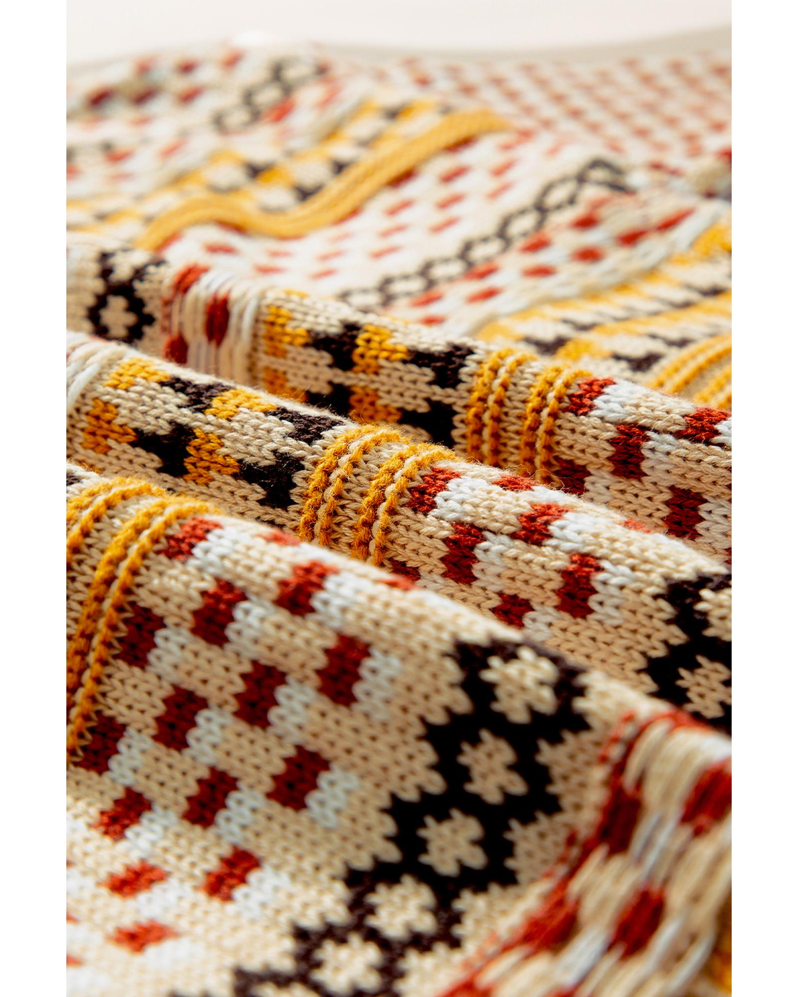 Fiery Red Trimmed Ruffle Sleeve Colorful Textured Sweater - S