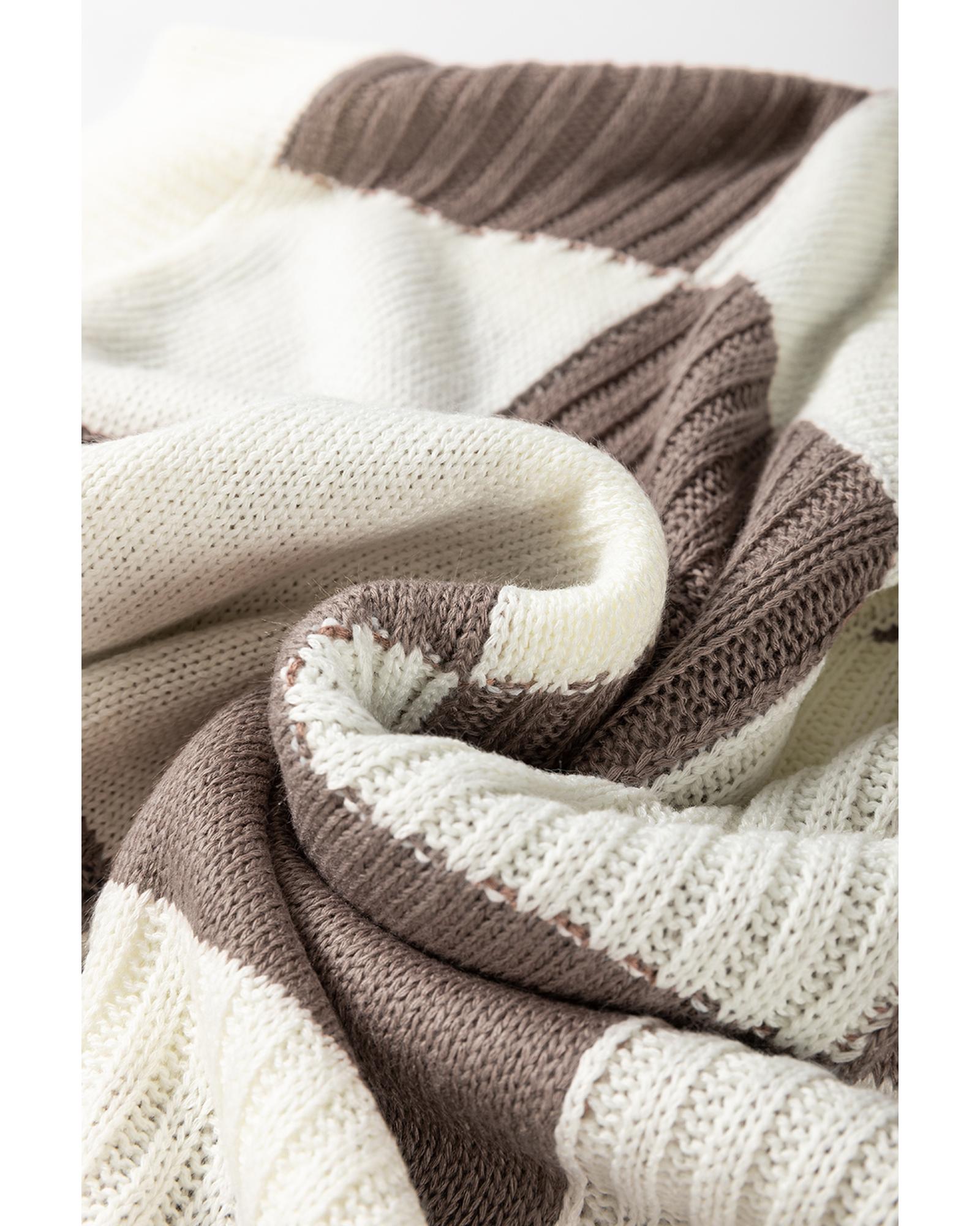 Khaki Checkered Color Block Crew Neck Short Sleeve Sweater – S