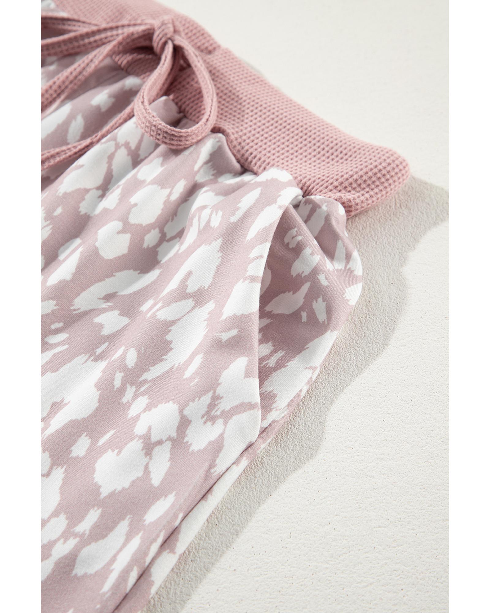 Khaki Classic Leopard Arched Hem Elastic Waist Casual Shorts – M