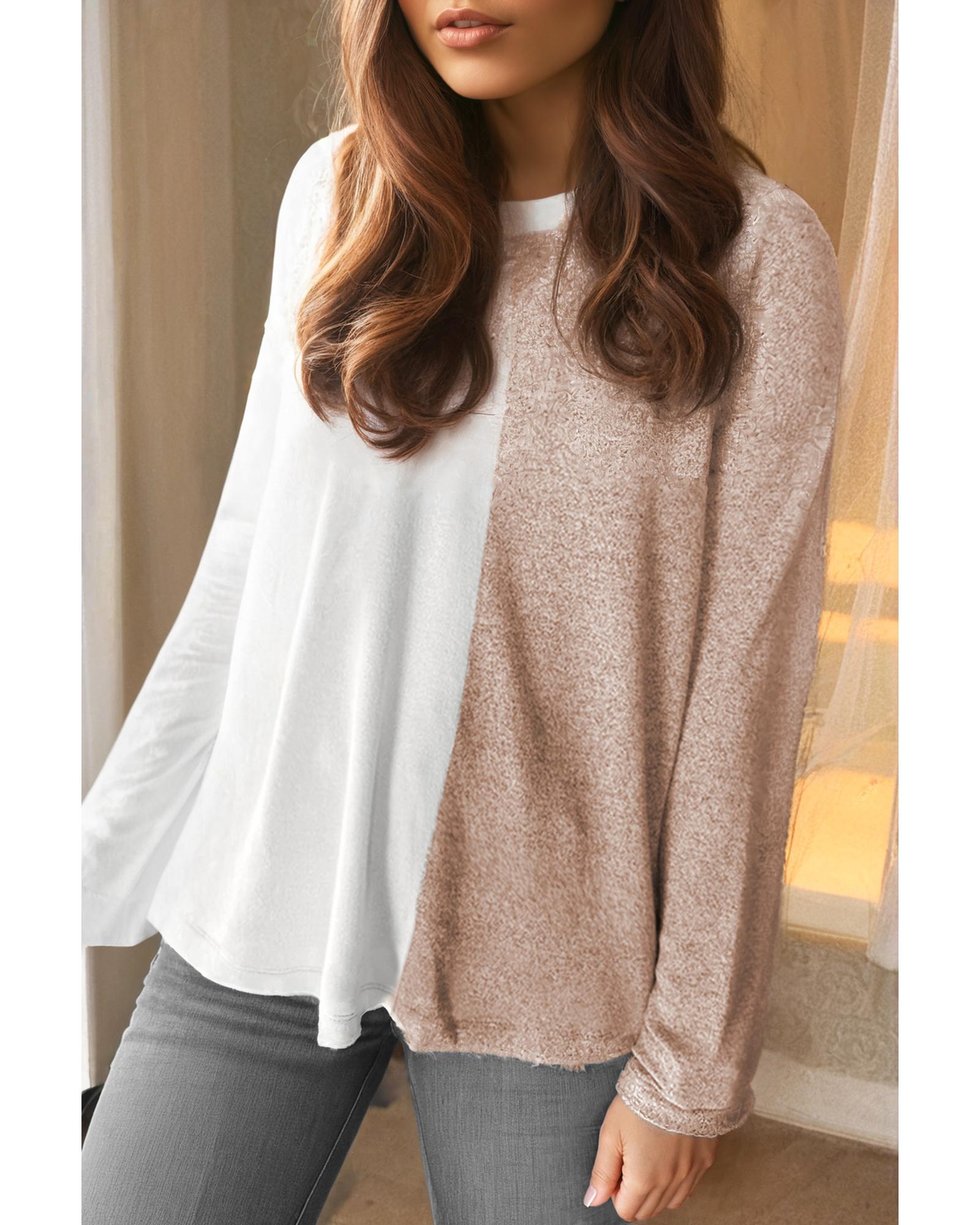 Khaki Colorblock Long Sleeve Crew Neck Top – S