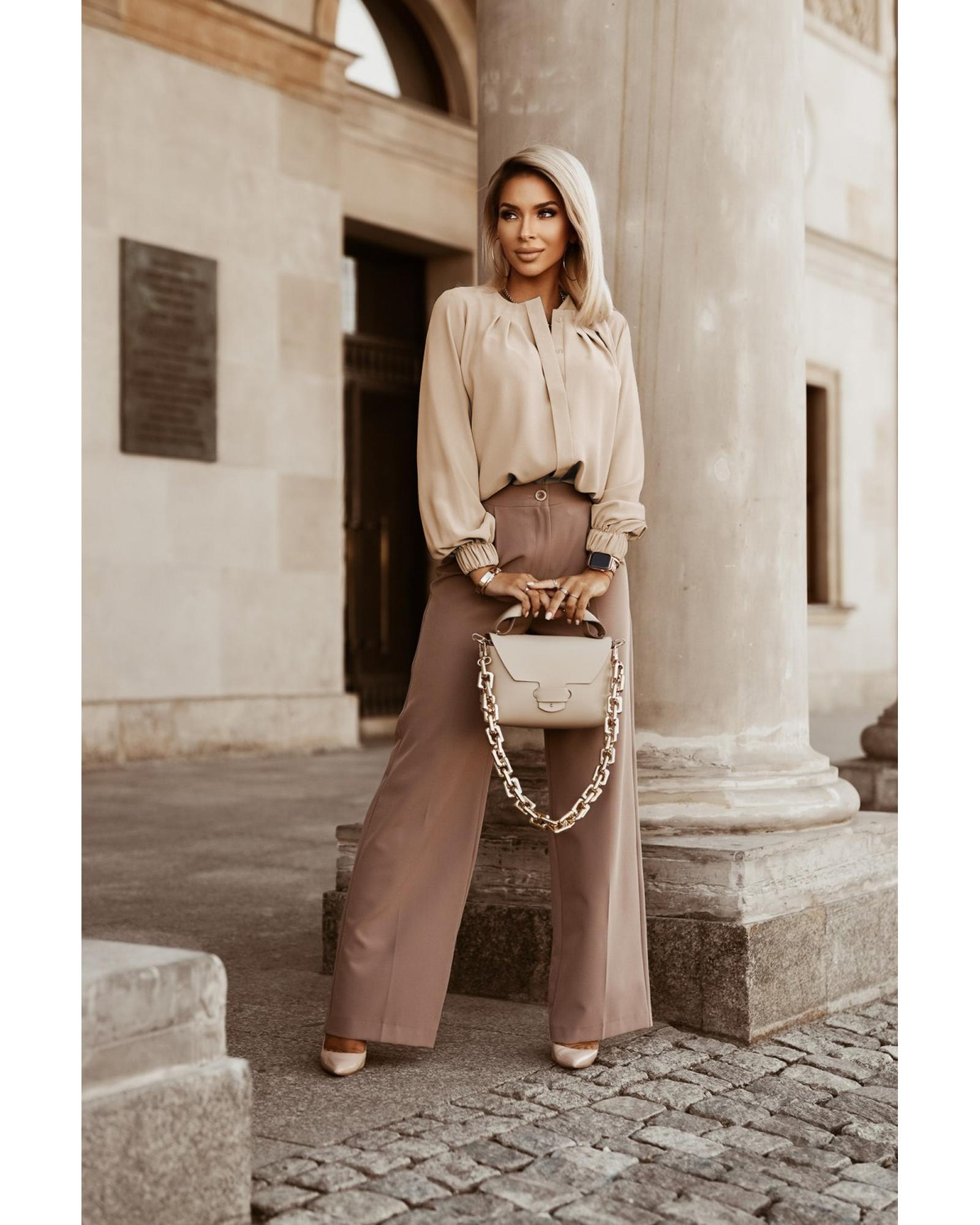 Khaki Crew Neck Gathered Stretch Cuff Shirt – XL