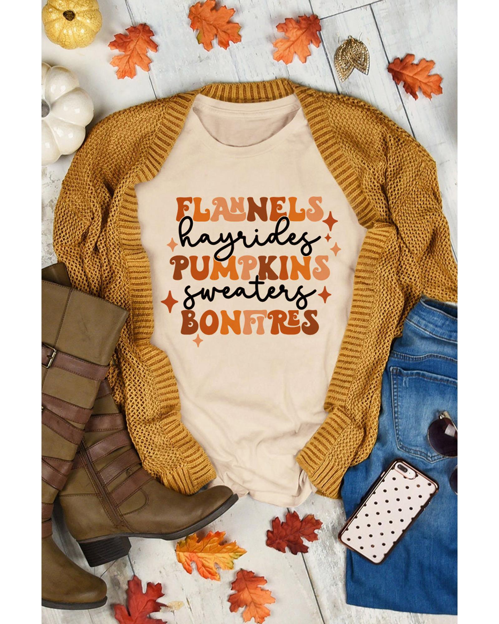 Khaki Flannels Hayrides Pumpkins Sweaters Bonfires Tee – S