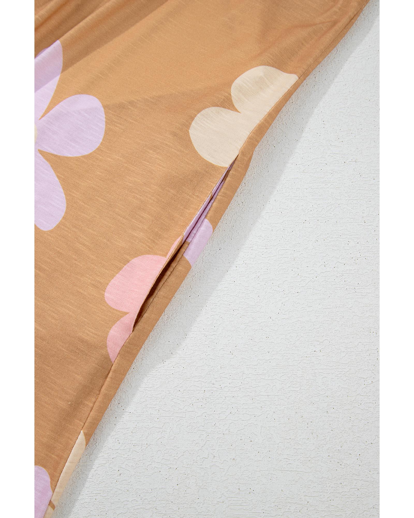 Khaki Floral Print Sleeveless Button up Wide Leg Loose Jumpsuit – L