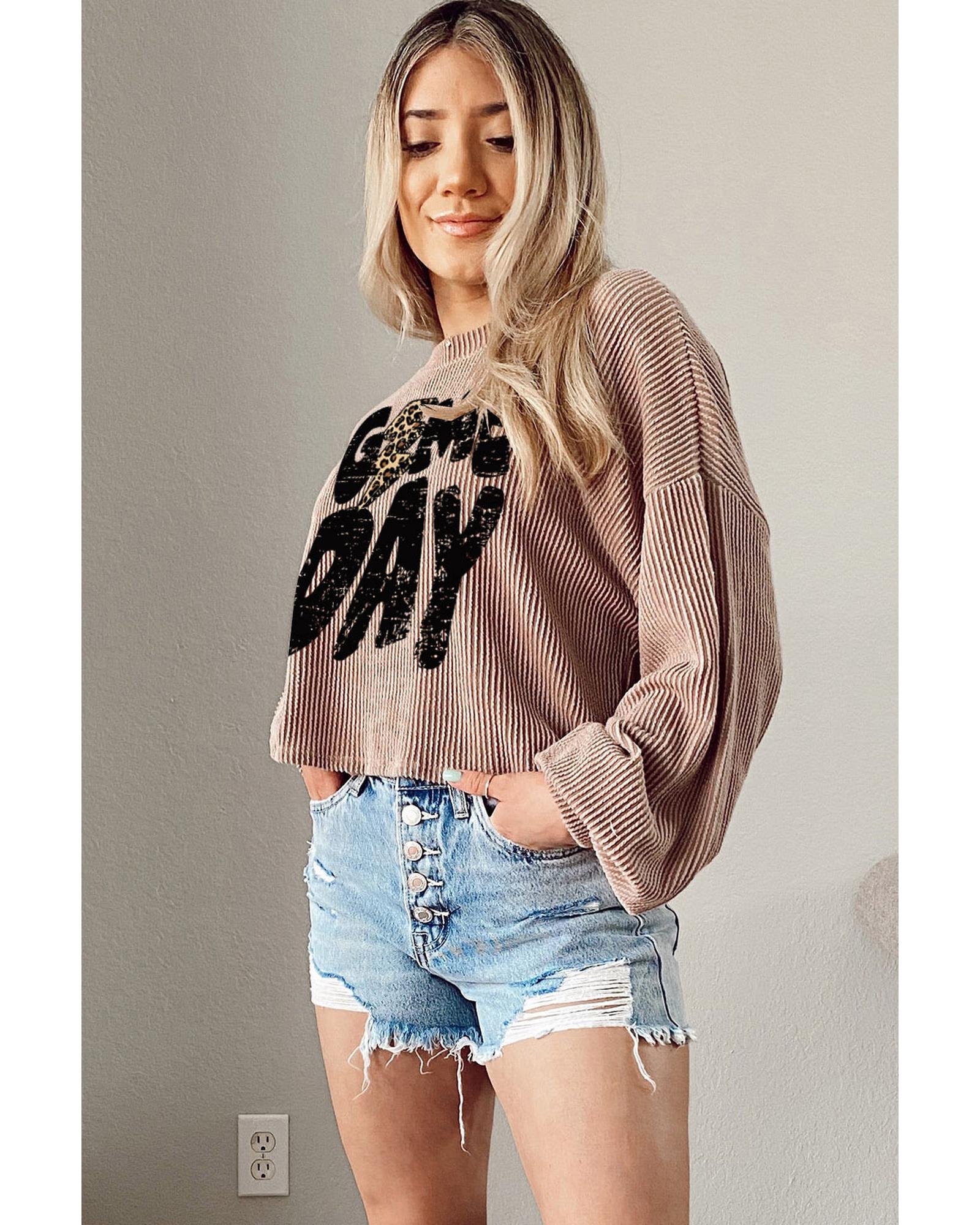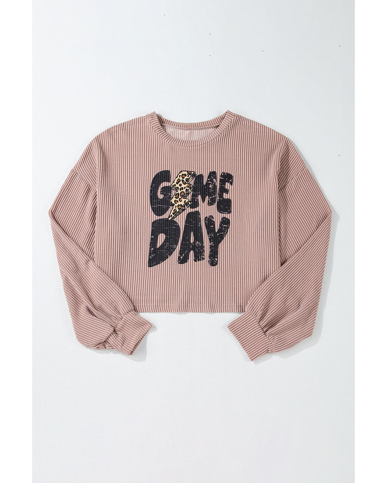 Khaki Game Day Graphic Crop Rugby Football Corded Knit Top – XL