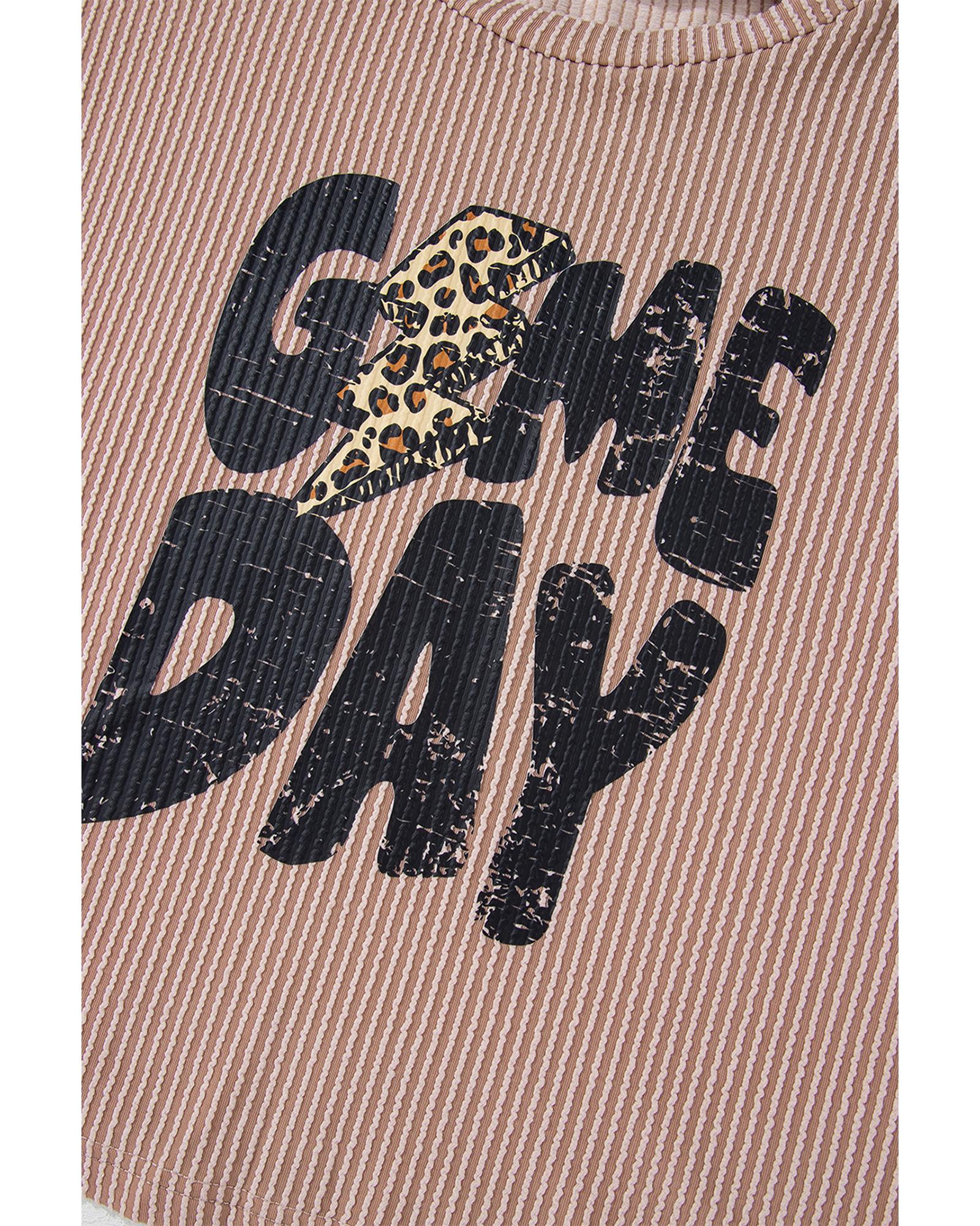 This crop rugby top features a trendy graphic design inspired by game day themes, crafted from a corded knit fabric for a stylish and comfortable fit. It offers a relaxed silhouette with medium elasticity, making it suitable for casual wear and sports-inspired outfits. Available in multiple sizes, it combines fashion with comfort for everyday use.