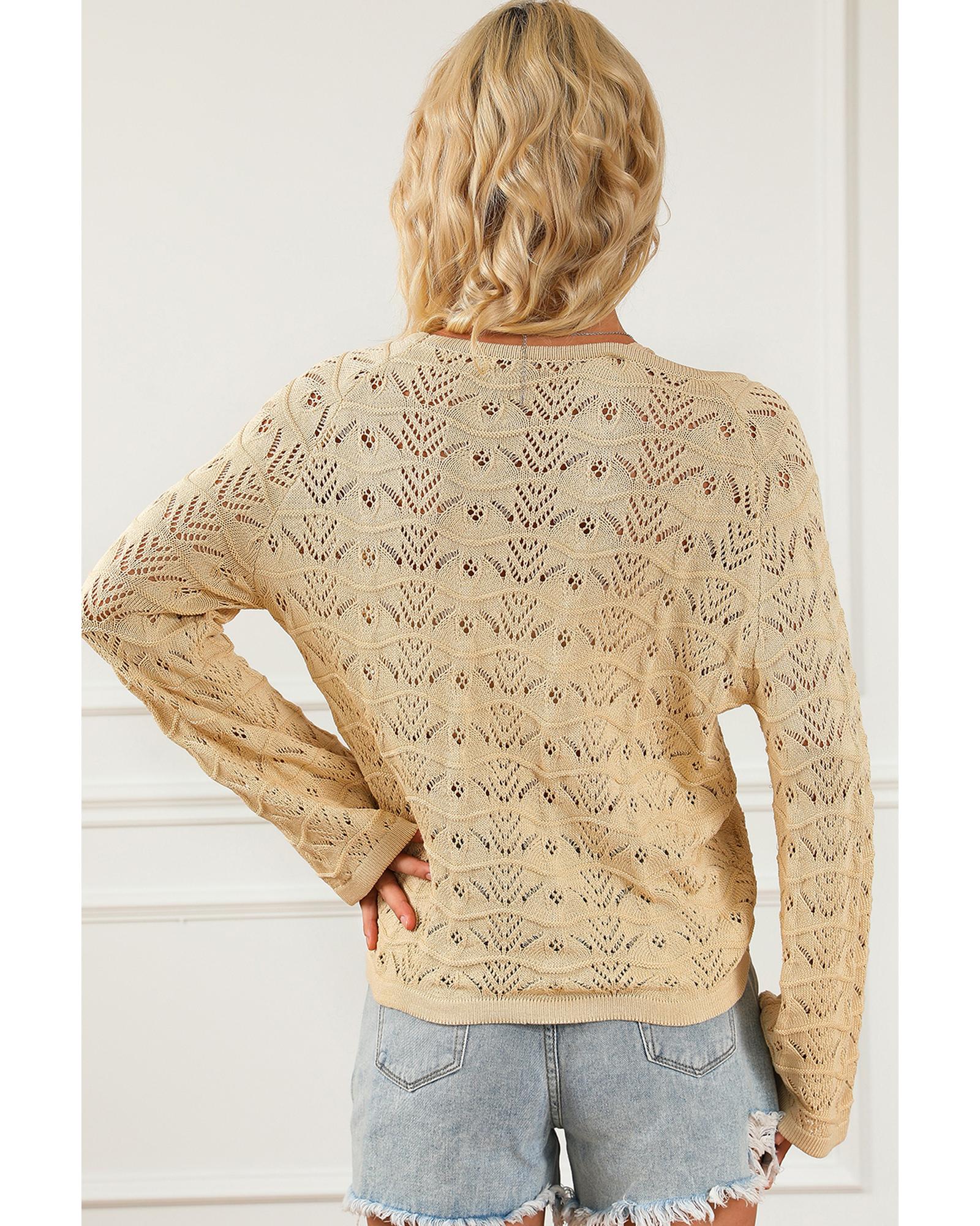 Khaki Hollowed Knit Asymmetric Drawstring Sweater – S
