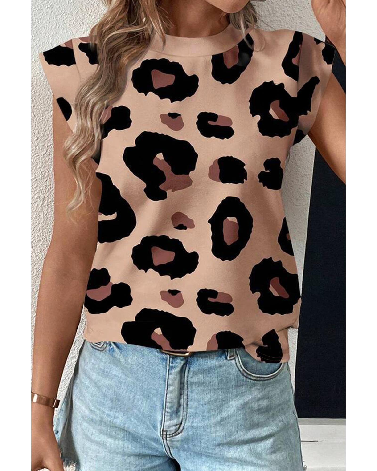 This casual tee features a stylish leopard print design with a comfortable fit. It is suitable for everyday wear and pairs well with denim shorts and casual pants. The fabric is soft, breathable, and offers high elasticity for added comfort.