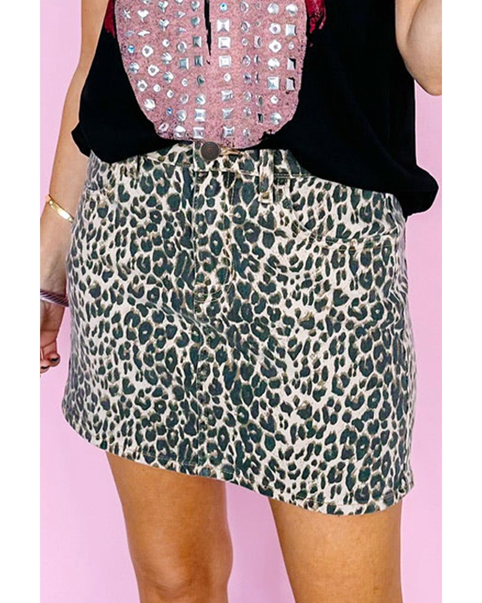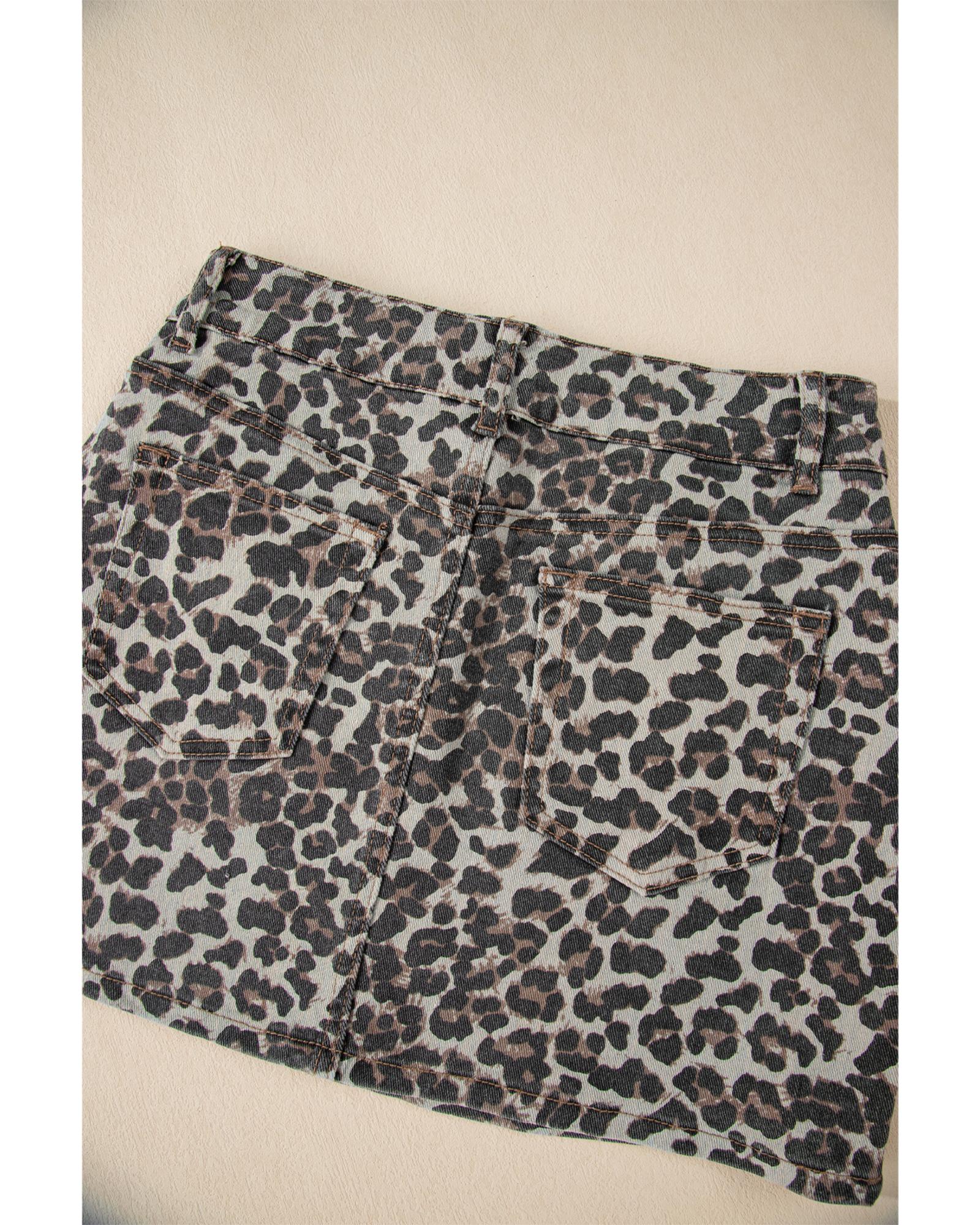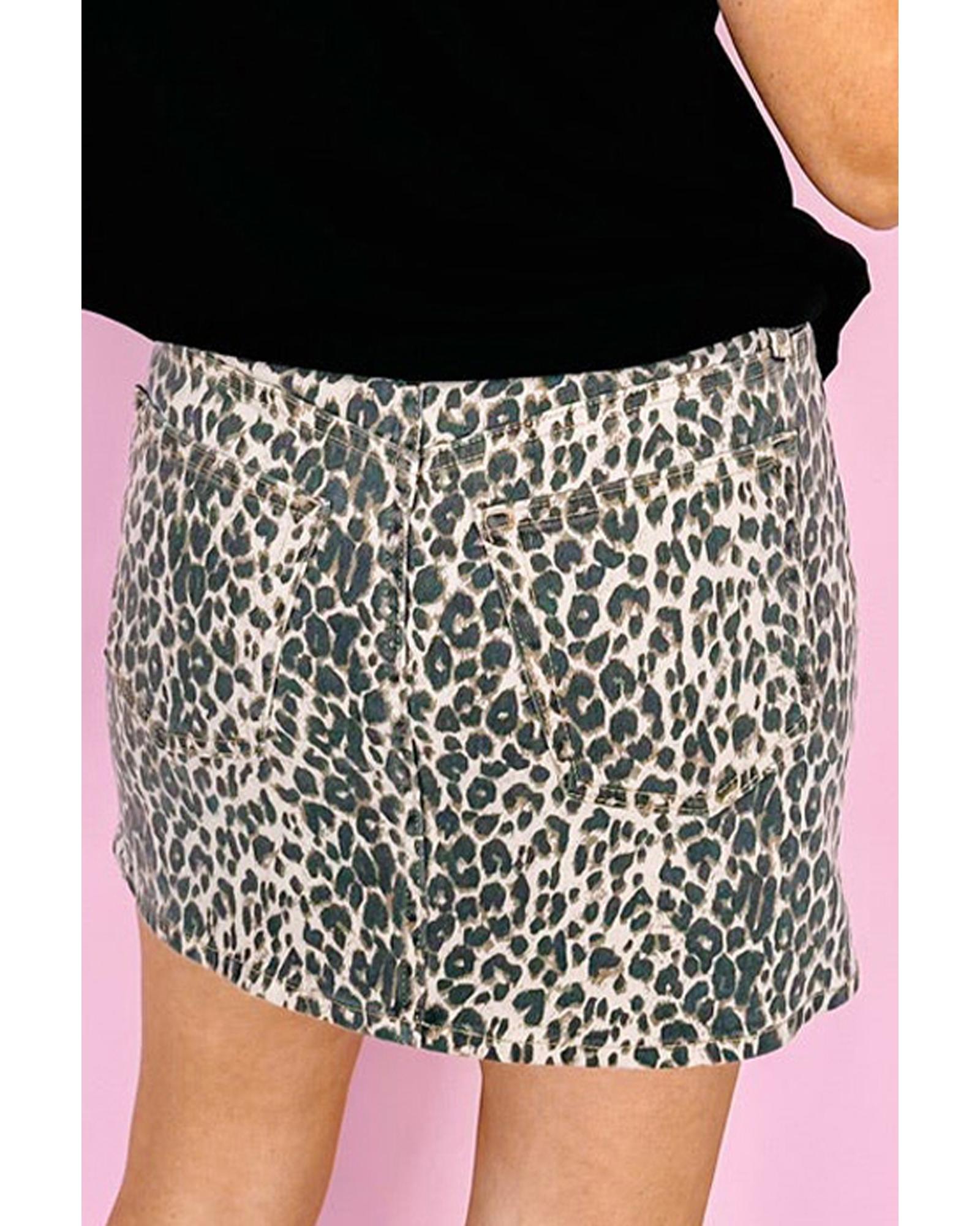 This khaki leopard denim mini skirt offers a trendy and fitted silhouette, combining sophistication and modern style. Crafted with high-quality materials, it provides durability and comfort, making it suitable for various occasions.
