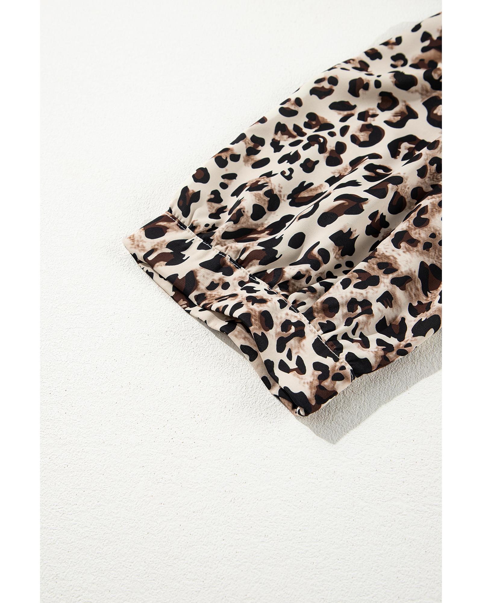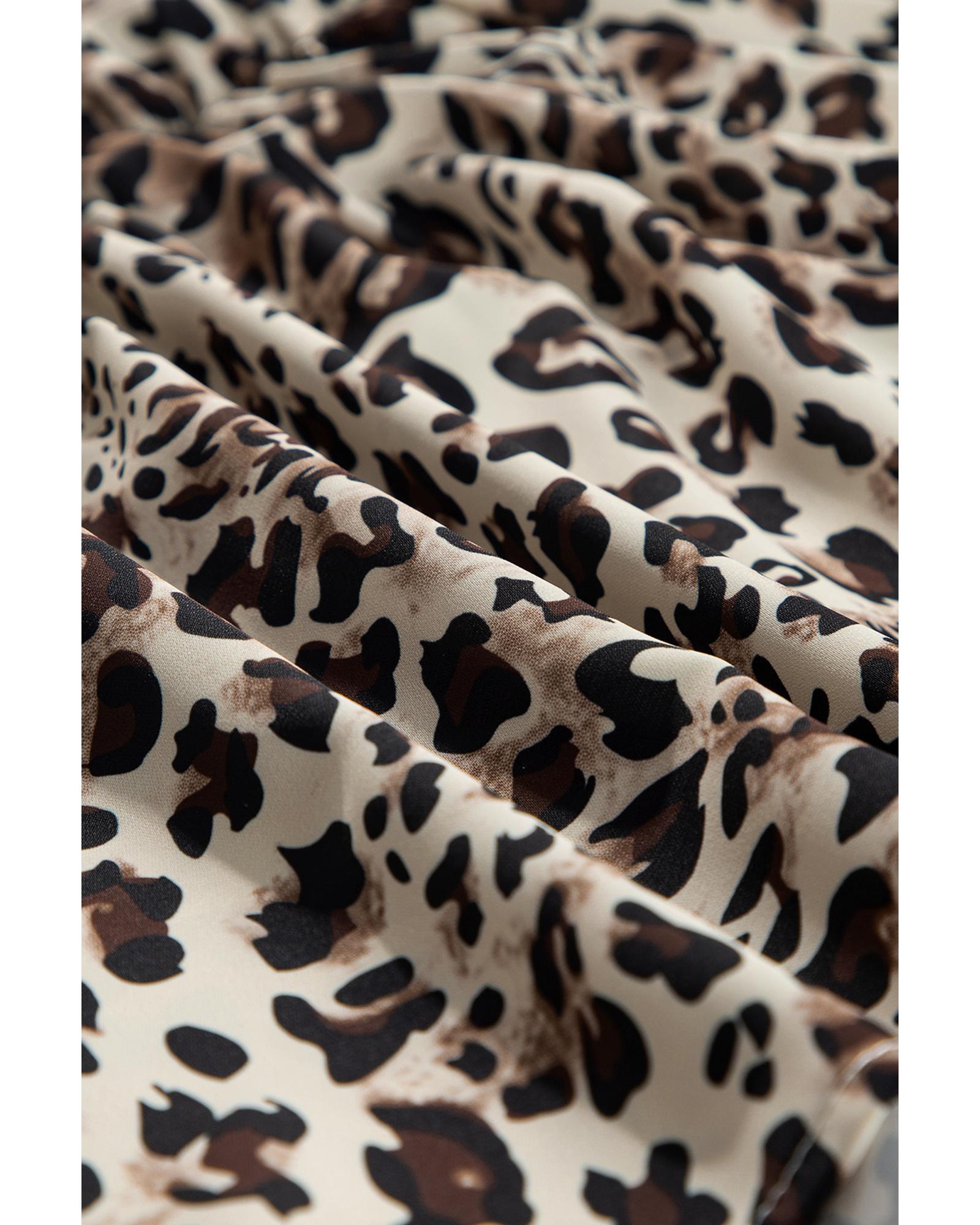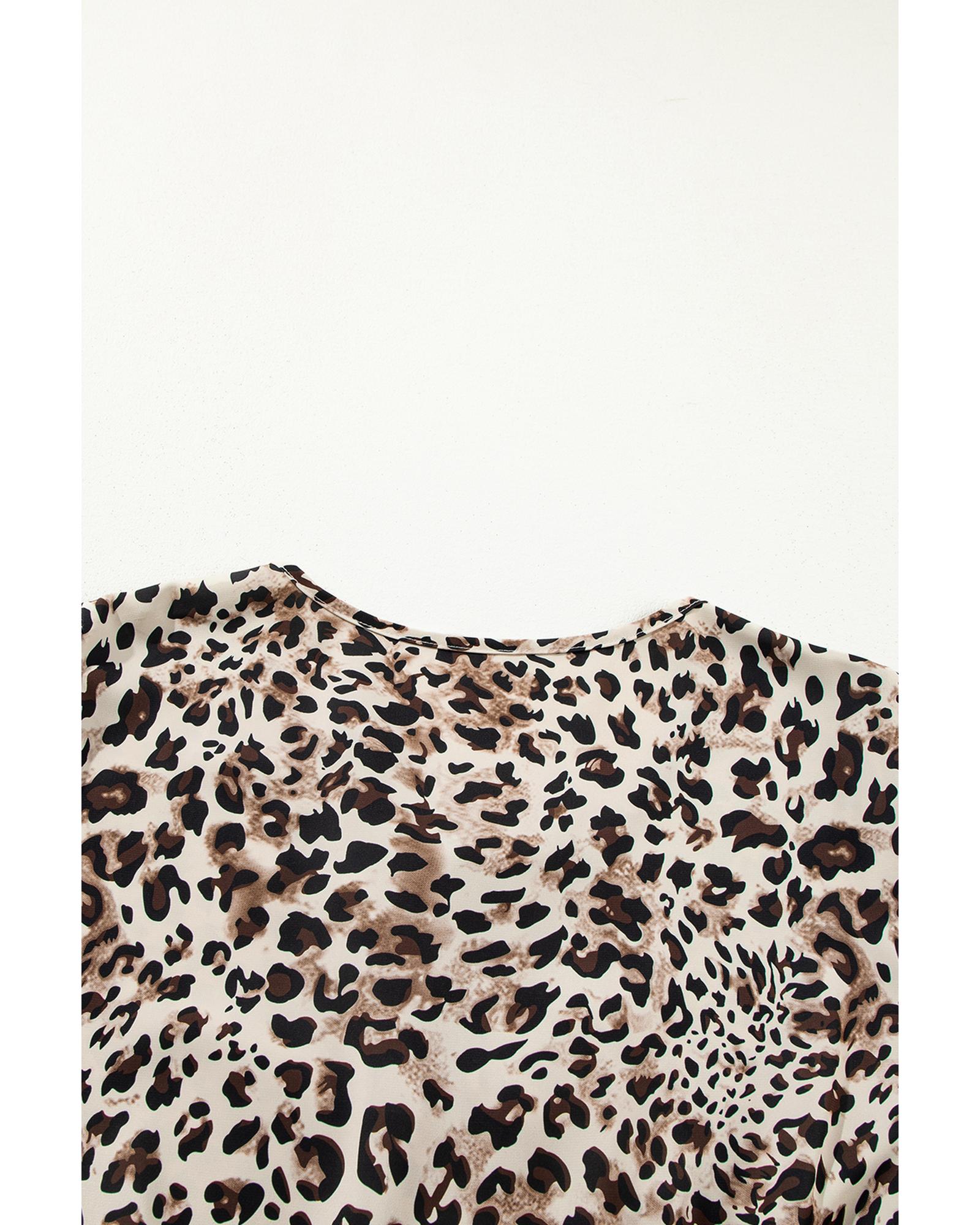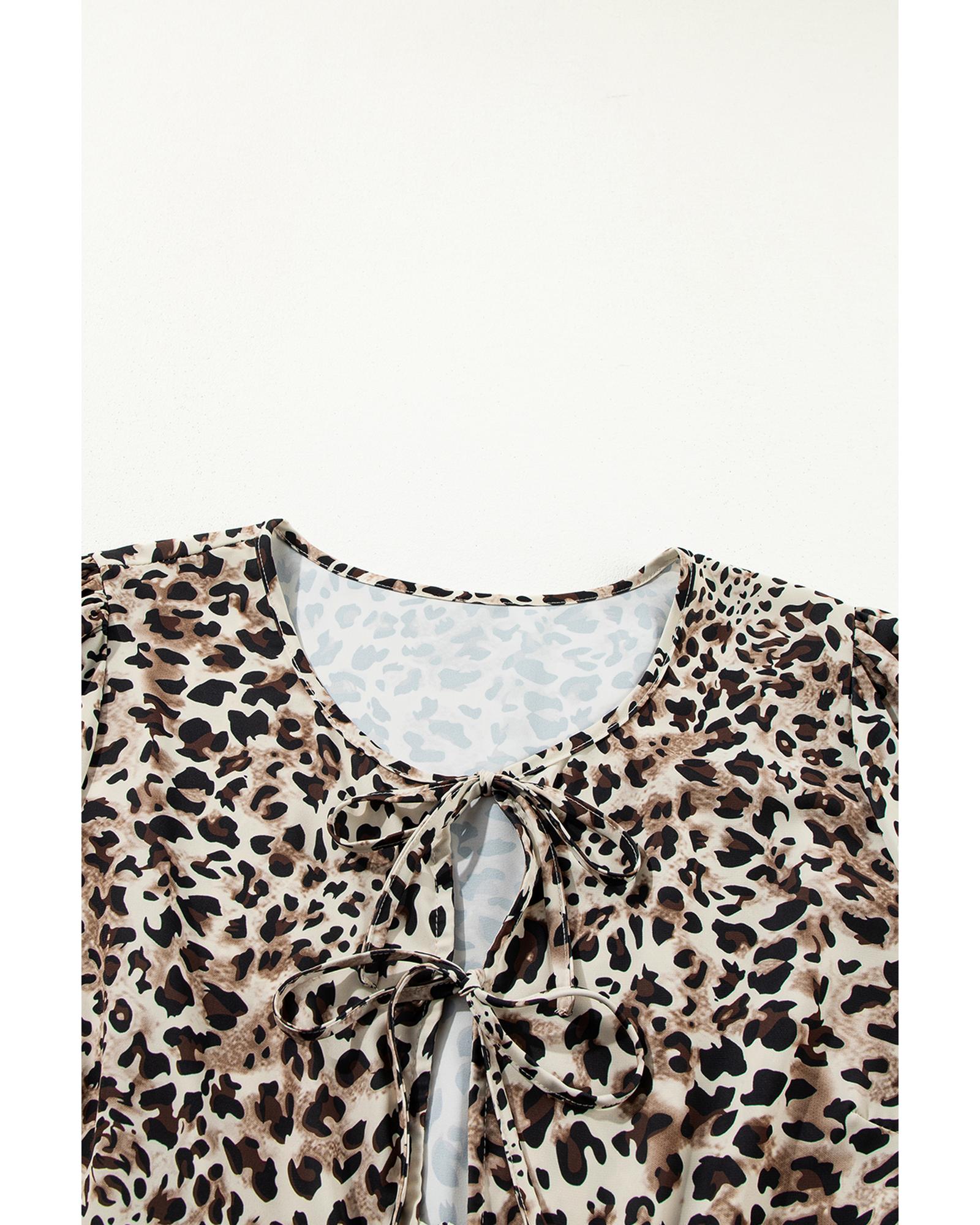 Khaki Leopard Print Lace-up Ruffled 3/4 Sleeve Plus Size Blouse – 2X