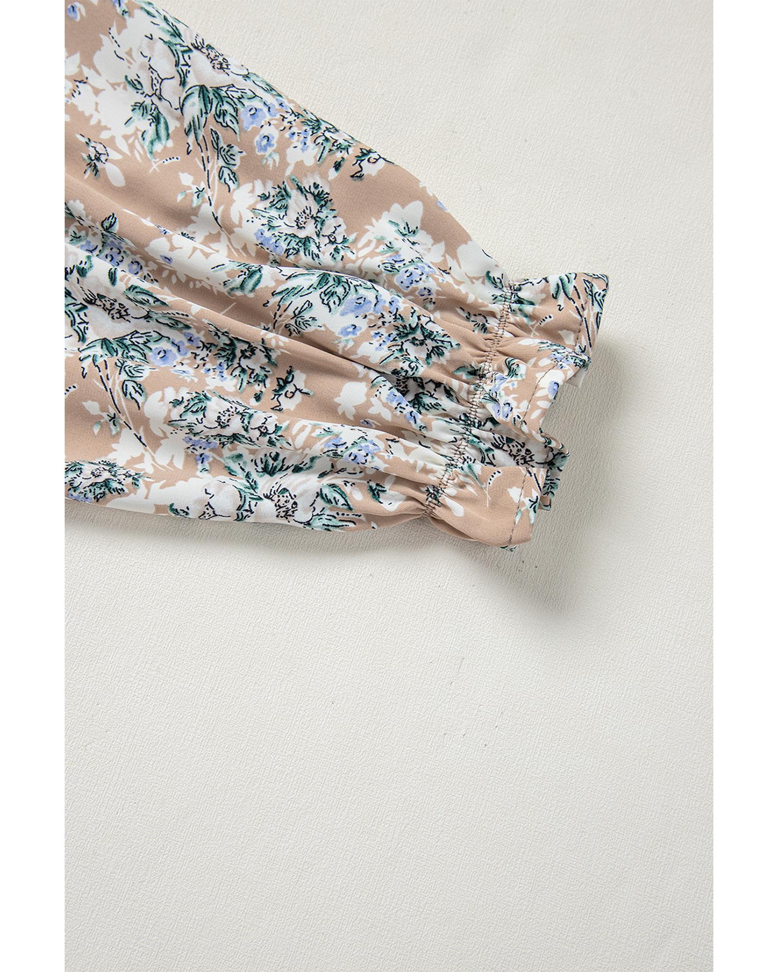 Khaki Maple Grove Floral Smocked Puff Sleeve Long Dress – S