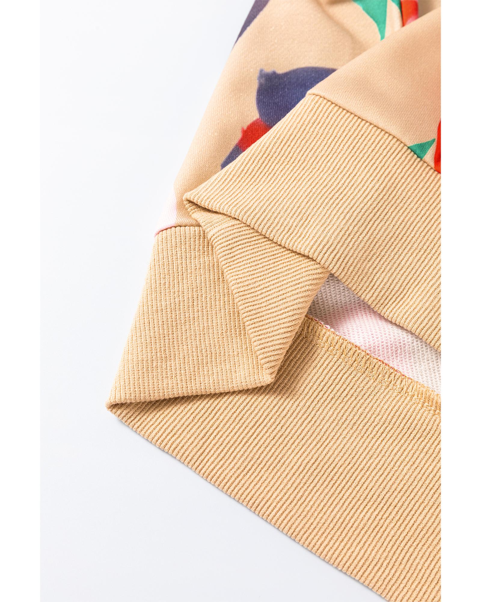 Khaki Multicolor Leopard Printed Drop Shoulder Pullover Sweatshirt – S